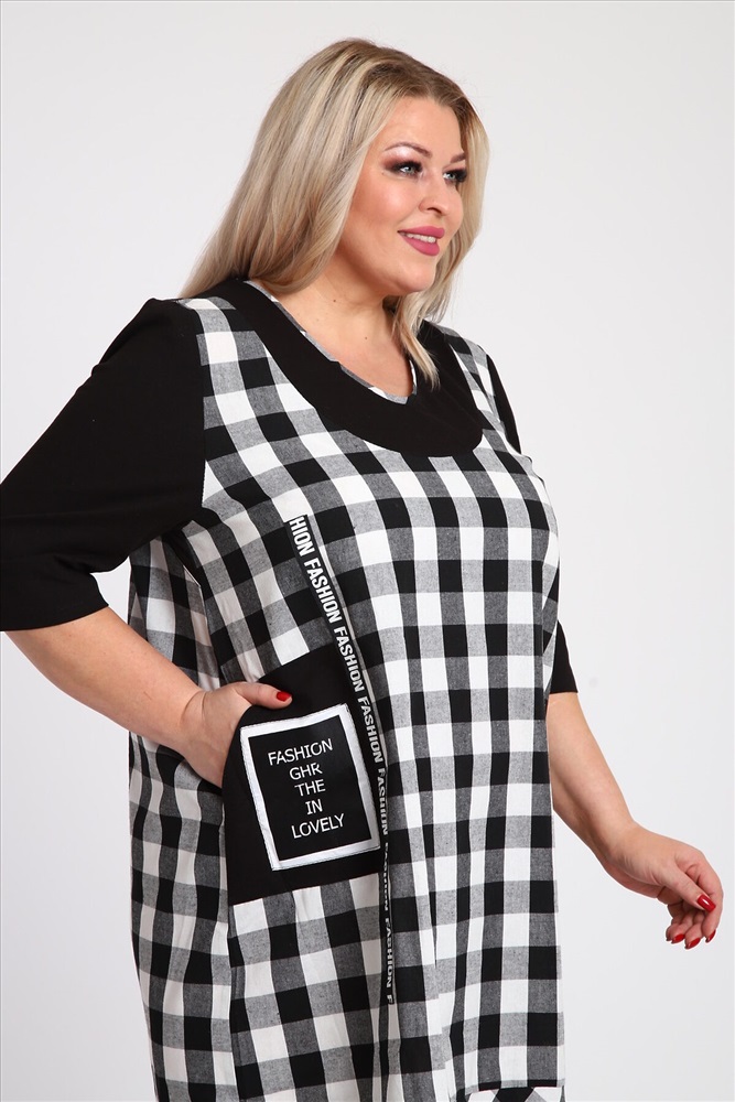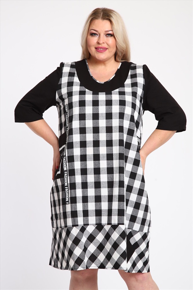 Страна производства: Россия Стильное женское платье в клетку с воланом и декором размеры от 58 до 64 Ищете идеальное сочетание комфорта, стиля и уникальности? Наше женское платье в клетку именно то, что вам нужно. Этот наряд станет отличным выбором для повседневного использования и особых мероприятий. Позвольте себе выглядеть и чувствовать себя уверенно, независимо от ситуации! Особенности изделия Рисунок: Классическая клетка это вечный тренд, который подходит для любого сезона. Платье в клетку всегда будет актуальным в вашем гардеробе. Волан по низу изделия: Нежный волан придает образу лёгкость и женственность, добавляя кокетливый акцент в ваш стиль. Накладной карман на полочке: Практичный и стильный элемент, украшенная тесьмой, добавляет изюминку и обеспечивает удобство. Размеры: Доступные размеры от 58 до 64 позволяют каждой женщине найти идеальное платье, учитывая индивидуальные особенности фигуры. Материалы и комфорт Наше женское платье изготовлено из высококачественных материалов, которые обеспечивают комфорт и долговечность: Ткань: Приятная на ощупь и дышащая ткань гарантирует комфорт даже в самые жаркие дни. Качество швов: Внимание к деталям и прочные швы гарантируют безупречный вид и длительный срок службы изделия. С чем носить Это клетчатое платье гармонично сочетается с различной обувью и аксессуарами: Носите с удобными балетками или стильными кедами для повседневного образа. Для более официальных мероприятий подойдут классические туфли на каблуке и небольшой клатч.