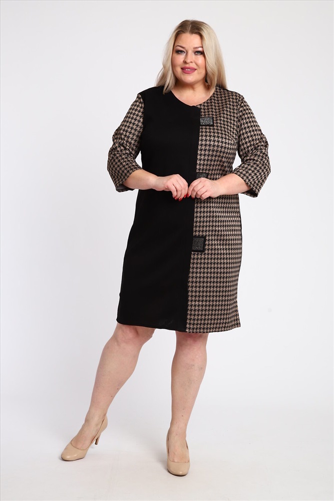 ID товара: 1083046 Состав: 75% Полиэстер; 20% Вискоза; 5% Спандекс Сезон: Демисезон Длина: До колена Фасон: Полуприлегающий Рукав: 3/4 Вырез горловины: Округлый Рисунок: Гусиная лапка Декоративные элементы: Принт Основная ткань: Полиэстер Стиль: классический Вид ткани: Академик Страна бренда: Россия Страна производства: Россия Женское платье из ткани Академик с модным принтом гусинные лапки и однотонной вставкой, размерный ряд 58-64: Идеальный выбор для стильных женщин В мире моды каждая деталь имеет значение, особенно когда речь идет об одежде, которая позволяет женщине чувствовать себя уверенно и стильно. Представляем вашему вниманию женское платье из ткани Академик с модным принтом гусинные лапки, которое прекрасно сочетает в себе классический узор и современный дизайн. Это платье станет идеальным дополнением вашего гардероба, особенно для тех, кто ищет стильные решения в размерном ряде с 58 по 64. Элегантность и комфорт в каждой детали Модный принт гусинные лапки уже несколько сезонов подряд не покидает модных подиумов. Этот классический узор, сочетающий в себе элементы традиционной шотландской клетки и современного стиля, идеально подходит для создания как деловых, так и повседневных образов. Используя ткань Академик, известную своим качеством и долговечностью, дизайнеры создали платье, которое не только выглядит потрясающе, но и чувствуется невероятно комфортно при носке. Идеальное сочетание с однотонной вставкой Это женское платье дополнено однотонной вставкой, которая добавляет изделию дополнительную изюминку и визуально корректирует фигуру, создавая эффектный силуэт. Такое дизайнерское решение подчеркивает естественные линии тела, делая акцент на самых выгодных его частях. Размерный ряд с 58 по 64: Основа для идеальной посадки Мы знаем, насколько важно каждой женщине найти платье, которое идеально сидит по фигуре. Именно поэтому это изделие доступно в размерном ряде с 58 по 64. Благодаря продуманной выкройке и четкой размерной сетке каждая сможет найти для себя идеальный вариант, который будет прекрасно сочетаться с остальными элементами гардероба. С чем носить платье с принтом гусинные лапки? Этот модный элемент гардероба легко комбинируется с разнообразными аксессуарами. Добавьте к этому платью классические туфли-лодочки и строгий жакет для офисного образа или выберите ботильоны и кожаную куртку для прогулок по городу. Клатч или сумка на цепочке станут финальным штрихом вашего стильного лука. Комментарии к товару