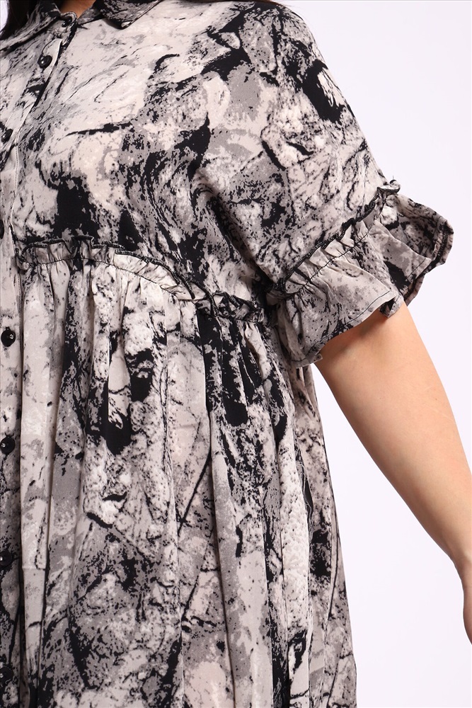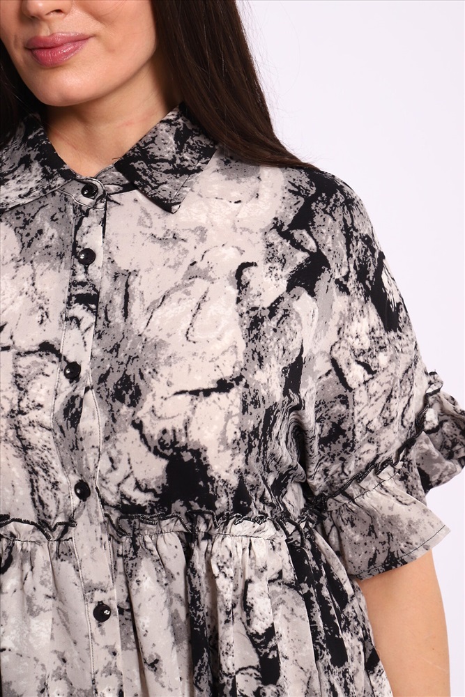 Производитель: НАТАЛИ ID товара: 1084514 Состав: 100% полиэстер Сезон: Весна/Лето Длина: До колена Фасон: Свободный крой Рукав: До локтя Вид застежки: Пуговицы Вырез горловины: Отложной воротник Основная ткань: Полиэстер Стиль: Повседневный Вид ткани: Креп-шифон Страна бренда: Россия Страна производства: Россия