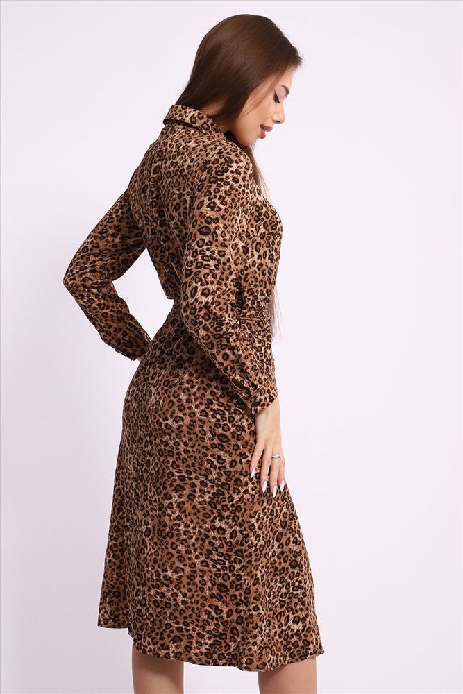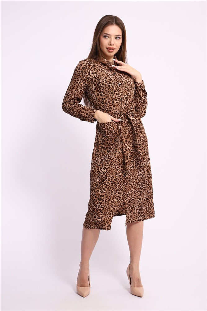 Женское платье-халат с модным леопардовым принтом обаяние и стиль в вашем гардеробе Если вы хотите добавить в свой гардероб яркий и стильный элемент одежды, обратите внимание на женское платье-халат с леопардовым принтом. Этот трендовый наряд сочетает в себе комфорт и модный дизайн, обеспечивая вам уверенность и привлекательность в любом случае. Леопардовый принт: модный выбор сезона Леопардовый принт уже несколько сезонов подряд занимает лидирующие позиции в модных коллекциях. Этот выразительный и смелый узор становится отличным акцентом в вашем образе, подчеркивая индивидуальность и уверенность в себе. Платье-халат с леопардовым принтом станет стильным решением для создания модных луков как на каждый день, так и для особенных случаев. Рубашечный воротник: классика в новом прочтении Платье-халат выполнено с удобным рубашечным воротником, что делает его универсальным решением для многих ситуаций. Рубашечный воротник придаёт образу нотки строгости и элегантности, добавляя нюансы классического стиля в повседневный аутфит. Это отличный выбор для офиса или деловых встреч. Практичные элементы: накладные карманы с клапаном и манжеты на рукавах Функциональность одна из важных характеристик этого платья. Накладные карманы с клапаном не только стильные, но и практичные, предоставляя дополнительное пространство для хранения мелочей, таких как телефон или ключи. Рукава на манжетах легко регулируются, что добавляет комфорта и позволяет адаптировать платье под различные погодные условия. Универсальный стиль для любого случая Это женское платье-халат идеальное решение как для прогулок по городу, так и для неформальных встреч с друзьями. Легко сочетайте его с разнообразными аксессуарами: добавьте ремень для акцента на талии или выберите лаконичные украшения для создания более изысканного образа. Возможности стилизации практически безграничны, что делает это платье незаменимым элементом гардероба.