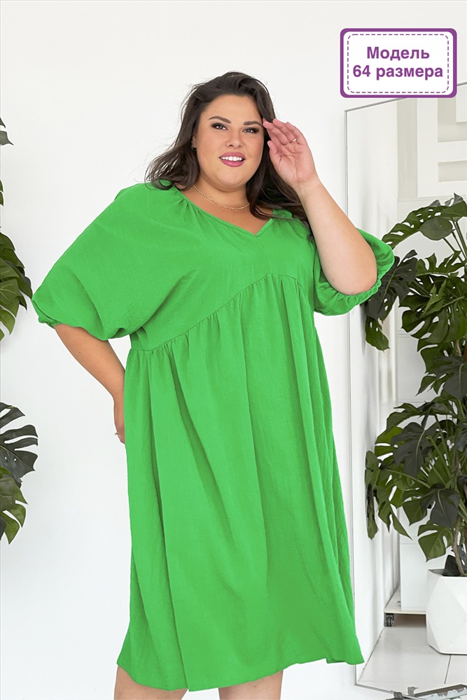 Платье жатое v-вырез со сборкой под грудью ярко-зеленое