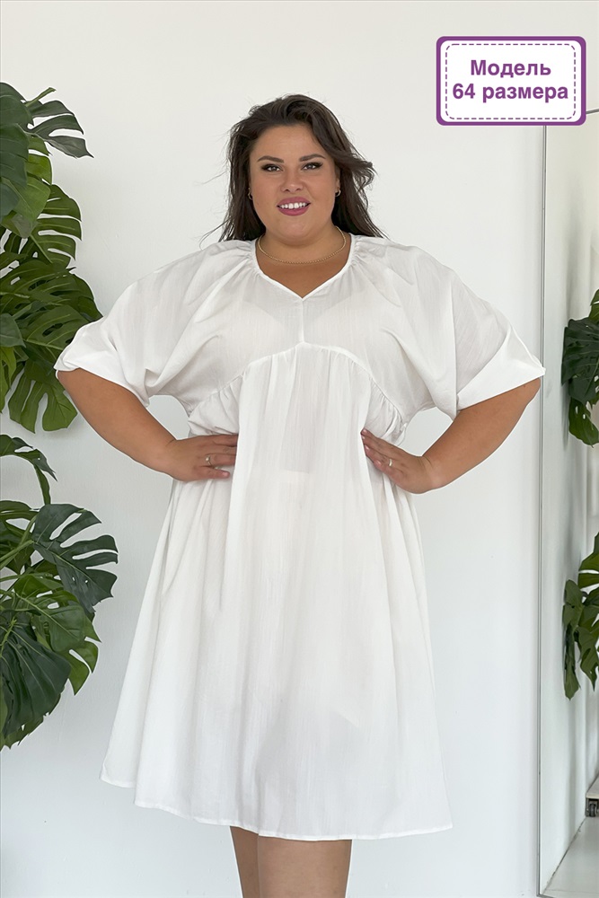 Стильное платье из мягкого материала. Модель имеет по переду и спинке V-образный вырез, который по спинке оформлен оригинальными завязками. Широкие цельнокроеные рукава длиной 3/4 по низу оформлены узкими резинками. Фигурная завышенная линия талии искусно обыгрывает область живота и бедер, маскируя небольшие недостатки фигуры. Центральный шов по спинке обеспечивает оптимальную посадку по фигуре. Платье создано для того, чтобы подчеркивать достоинства. Стильный клатч и туфли на каблуках станут идеальным дополнением к нарядному образу.