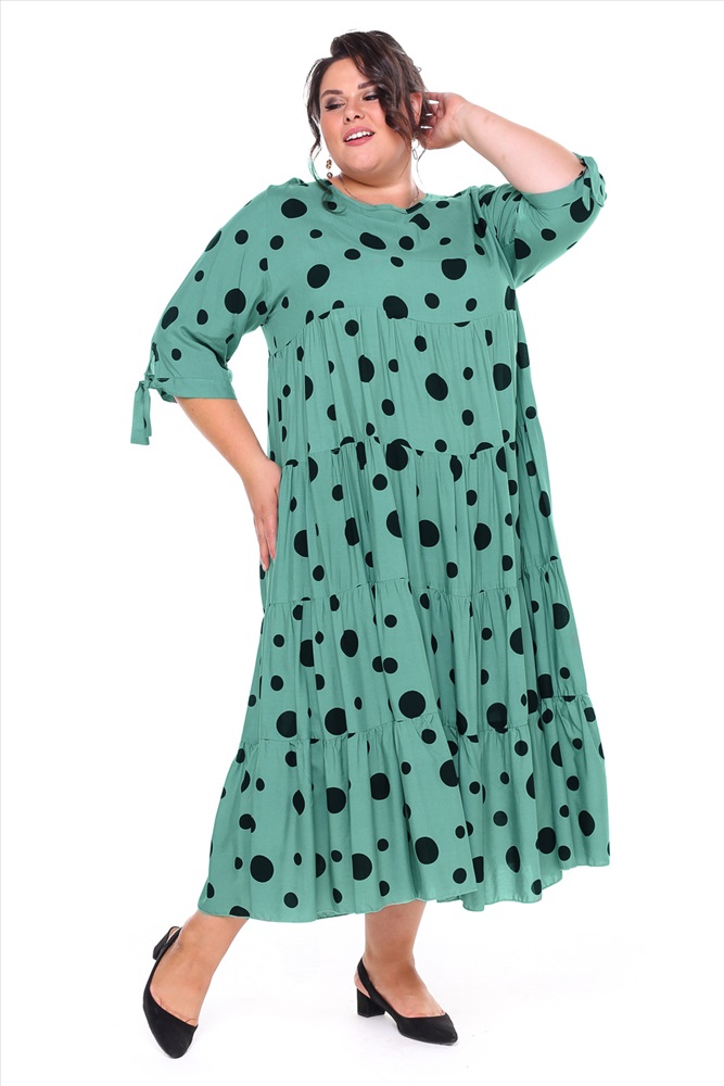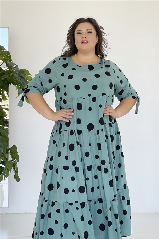 Платье штапель "Ярусы" крупный горох 3/4 рукав зеленое