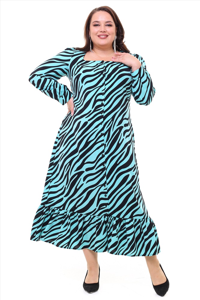 Платье "зебра" с квадратным вырезом на пуговках мята