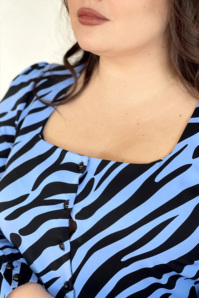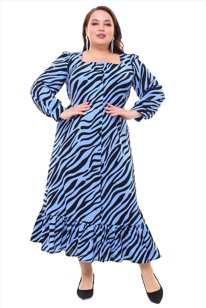 Видео: https-//rutube.ru/embed/d047cf8c655636f971bc34be1550e679/ Цвет: Синий Фасон: Платье Длина платья: Французская длина Материал: Искусственный шелк Длина рукава: Длинный рукав Параметры модели: Рост 168 см, Размер 54 Параметр- Материал: Искусственный шелк Параметр- Цвет: Синий Параметр- Параметры модели: Рост 168 см, Размер 54 Параметр- Длина рукава: Длинный рукав Платье "зебра" с квадратным вырезом на пуговках голубое Элегантное платье из мягкой струящейся ткани - подчеркнет вашу женственность и изящность. Модель имеет рукава полной длины, которые по низу присобраны тонкой резинкой. Полуприлегающий верх подчеркивает декольте благодаря квадратному вырезу. Платье застёгивается под планку на оригинальные пуговки. Линию талии при желании можно подчеркнуть поясом в тон. Расклешенная струящаяся юбка искусно обыгрывает область бедер и добавляет женственности. Вытачки на груди и по спинке обеспечивают оптимальную посадку по фигуре. Легкий струящийся материал виртуозно обыгрывает фигуру благодаря свободному крою модели. Модный принт добавляет динамичности, а кокетливый волан по низу придает  образу женственности. Платье создано для того, чтобы подчеркивать достоинства и скрывать недостатки, Вам нужно лишь добавить обувь на каблуках и идеальный образ готов. Длина изделия 50 размера по спинке - 128 см. В каждом следующем размере длина увеличивается.