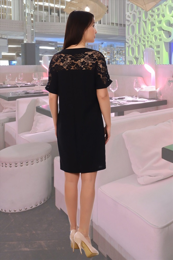 Женское платье прямого силуэта, с кокеткой из кружева, рукав спущенный.