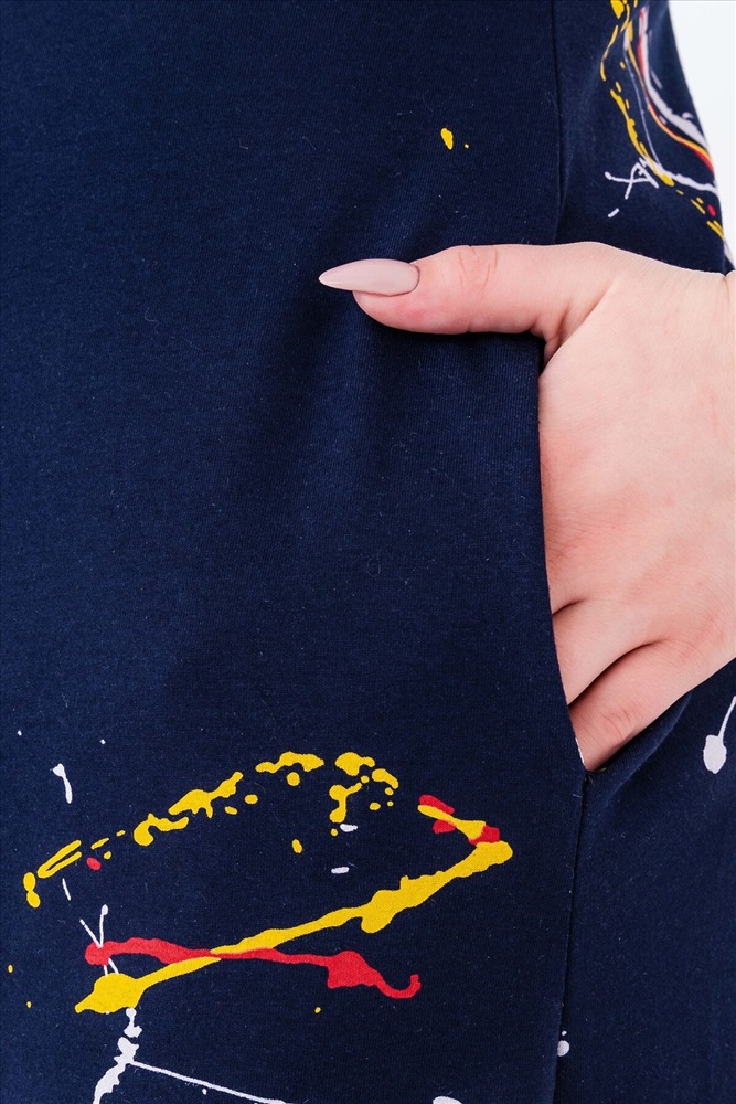 Производитель: НАТАЛИ ID товара: 785642 Состав: 100% Хлопок Сезон: Весна/Лето Длина: Миди Фасон: Свободный крой Рукав: Короткие Вырез горловины: Округлый Рисунок: Абстракция Тип карманов: В шве Декоративные элементы: Разрезы Основная ткань: Хлопок | Кулирка Стиль: Повседневный Страна бренда: Россия Страна производства: Россия
