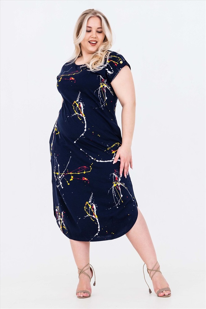 Стильное платье из кулирки. Свободный крой, округлый вырез горловины, длина "миди", разрезы в боковых швах, короткий втачной рукав, дизайнерский принт. Платье имеет большую размерную сетку и подойдет на любую фигуру. Карманы в боковых швах придают платью практичности. Платье сшито из самого качественного трикотажа – кулирки. Она состоит из чистого хлопка и неимоверно приятно в носке. Благодаря натуральному составу платье «дышит», не вызывает аллергий и раздражений. Ткань износостойкая и легко переносит множество стирок и глажек. Туника женская очень удобна и как платье на каждый день, и во время летних прогулок, пикников и веселых загородных поездок.