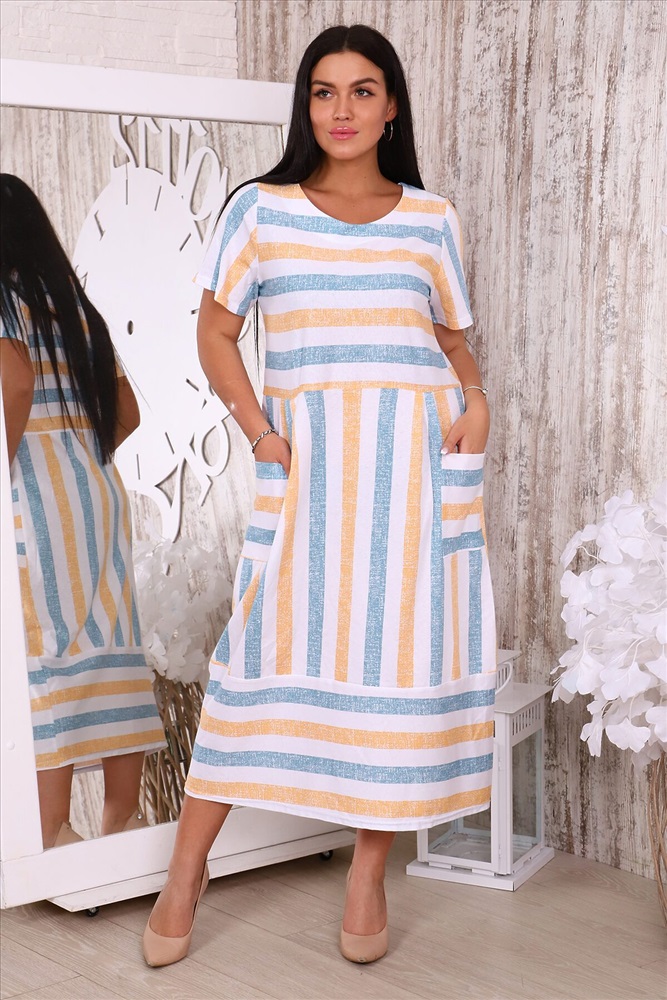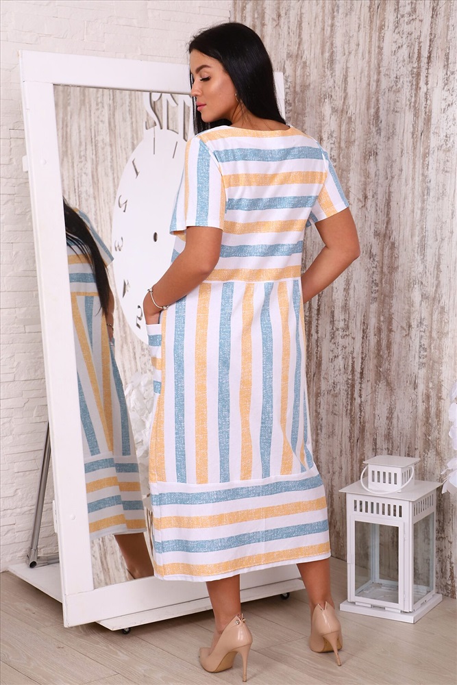 ID товара: 1114109 Состав: 100% Хлопок Сезон: Весна/Лето Длина: Мини Фасон: Полуприталенный Рукав: короткие Вырез горловины: Округлый Рисунок: Полоска Тип карманов: Накладные Декоративные элементы: Принт Основная ткань: Хлопок Стиль: повседневный Вид ткани: Кулирка Страна бренда: Россия Страна производства: Россия Женское полуприталенное платье. Рукав втачной, короткий, накладные карманы, длина изделия ниже колен Комментарии к товару