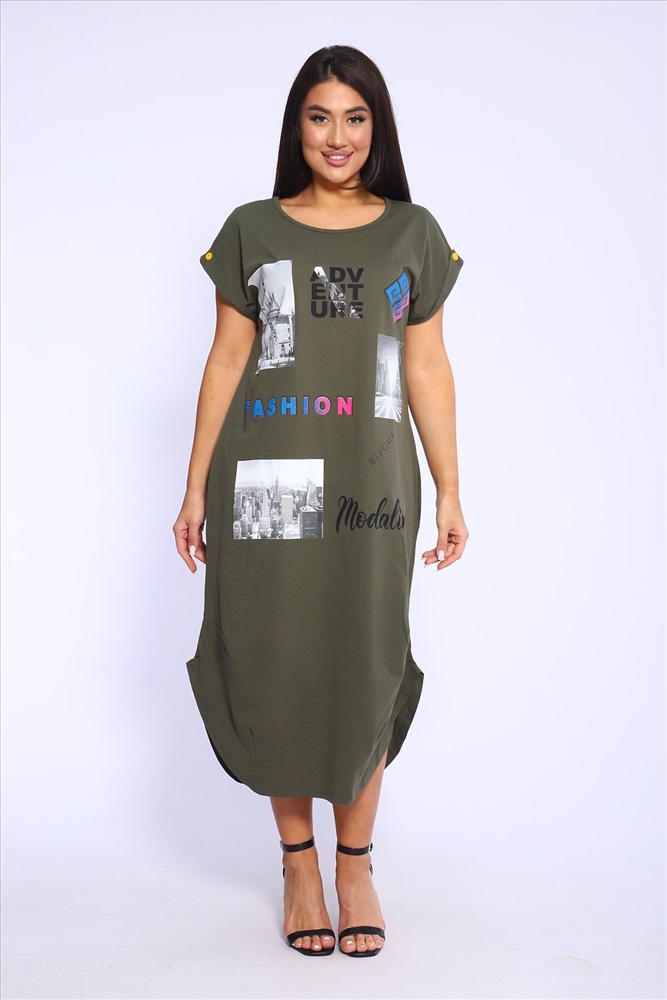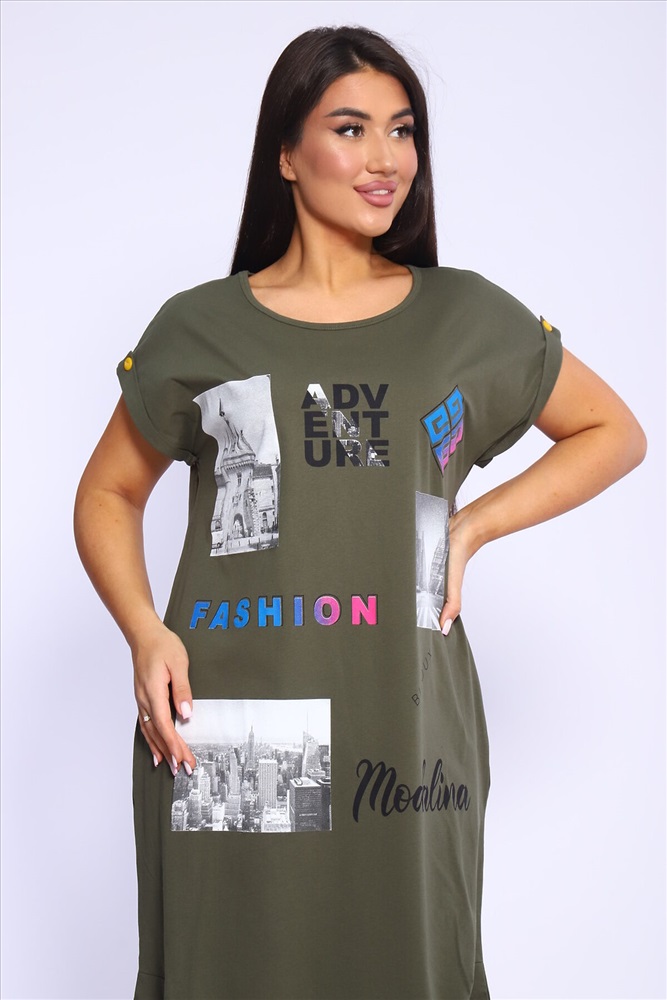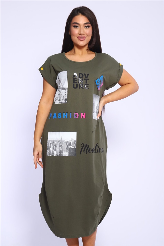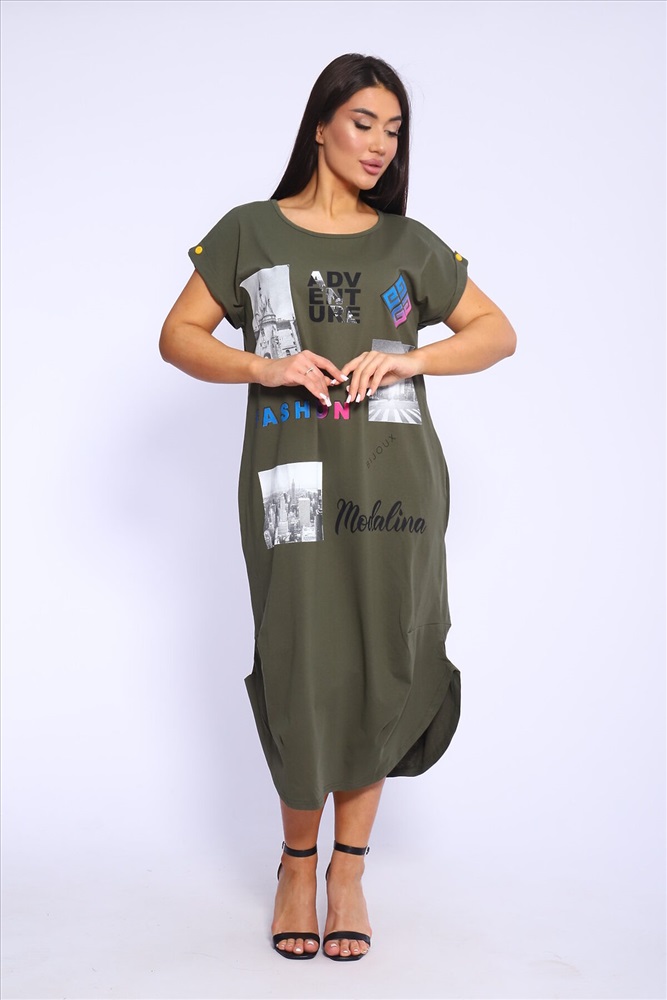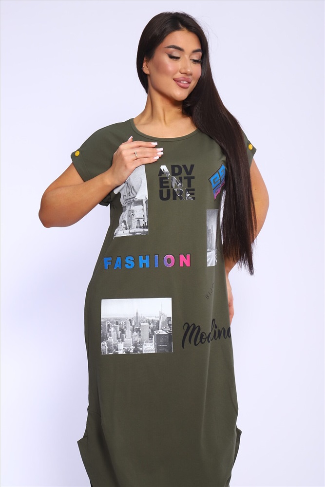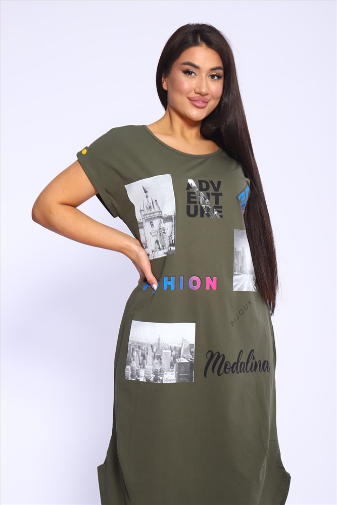 ID товара: 1120036 Состав: 100% Хлопок Сезон: Весна/Лето Длина: Миди Фасон: Свободный Рукав: короткие Вырез горловины: Округлый Рисунок: Надпись Декоративные элементы: Принт Основная ткань: Хлопок Стиль: Повседневный Вид ткани: Кулирка Страна бренда: Россия Страна производства: Россия Элегантное женское платье собственного фабричного производства MODALINA. Платье сшито из трикотажа, кулирки высшего качества, произведенной в Турции. Трикотажное хлопковое платье имеет оригинальный дизайн проработанный нашими технологами до мелочей. Платье - туника стройнит, дышит и не сковывает движения, не потеряет цвет после множества стирок. Платье можно использовать как домашнюю одежду, повседневную одежду, в летний период, для пляжа и морских прогулок, для путешествий и активного отдыха. Размерный ряд представлен от маленьких до больших размеров. Идеальное лекало, свободный крой делают домашнее платье комфортным для женщин разной комплекции. Подходит полным женщинам, с пышными формами, высоким и невысоким женщинам, скрывает все недостатки фигуры. Комментарии к товару