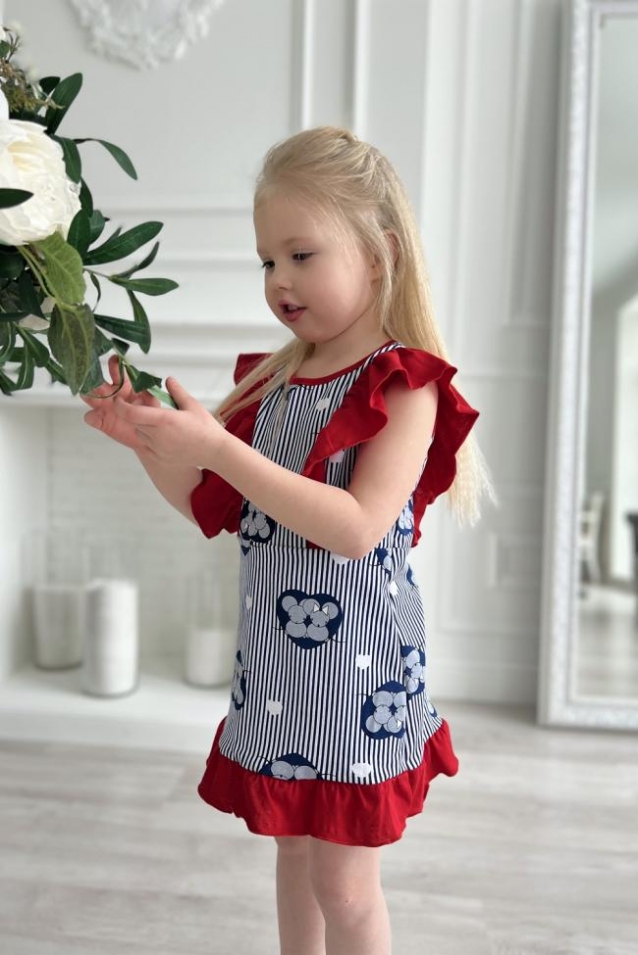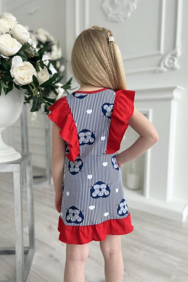 Платье детское отрезное по талии, по низу изделия и в рельефах оборка.