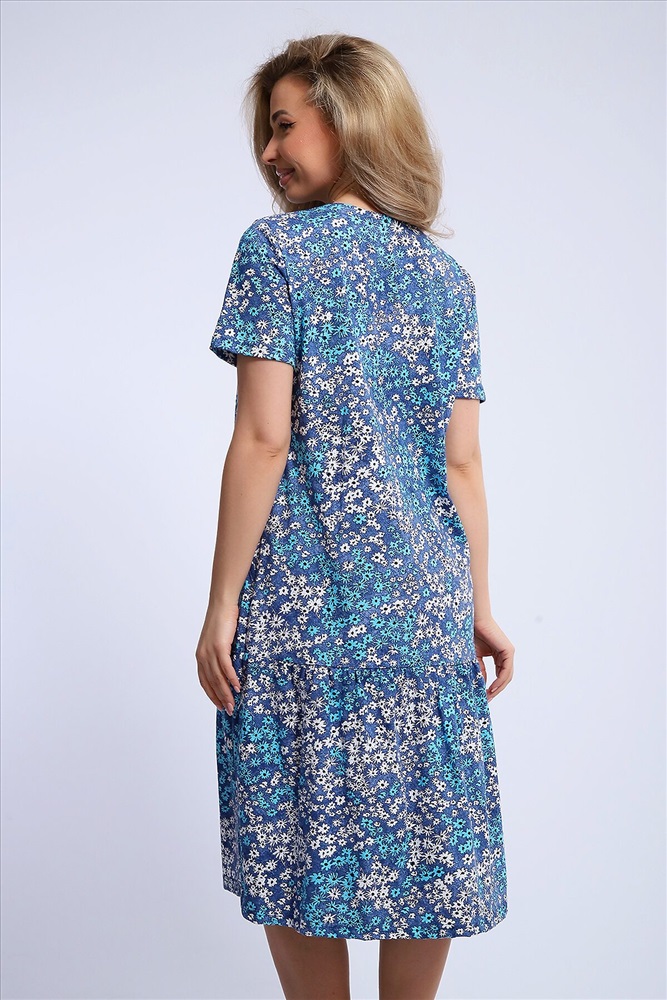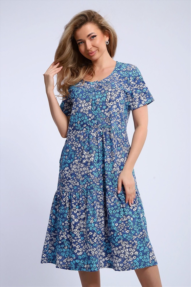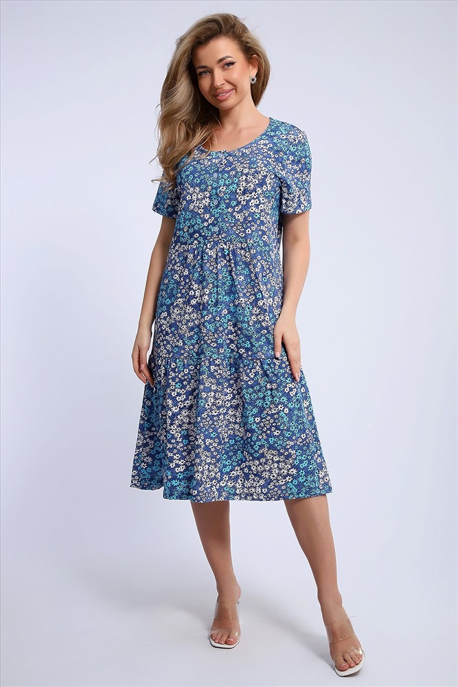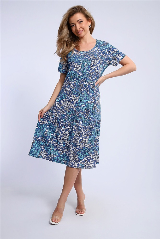 ID товара: 1129682 Состав: 100% Хлопок Сезон: Весна/Лето Длина: Миди Фасон: Свободный крой Рукав: короткие Вырез горловины: Округлый Рисунок: цветочный Декоративные элементы: Принт Основная ткань: Хлопок Стиль: повседневный Вид ткани: Кулирка Страна бренда: Россия Страна производства: Россия Платье из хлопковой кулирки. Очаровательные ярусные платья в стиле кантри с шикарной нижней оборкой и застежкой. Очень удобные. Комментарии к товару