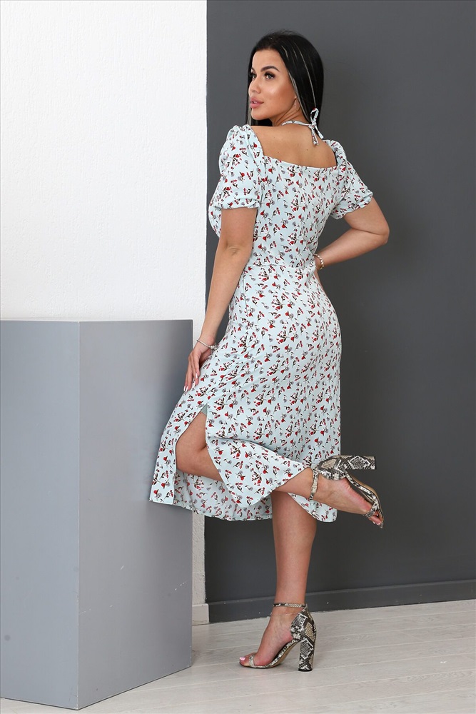 ID товара: 890451 Состав: 70% Полиэстер, 30% Вискоза Сезон: Весна/Лето Длина: Миди Фасон: Полуприталенный Рукав: короткие Вырез горловины: Лодочка Рисунок: цветочный Основная ткань: Полиэстер Стиль: Повседневный Вид ткани: Прадо Страна бренда: Россия Страна производства: Россия Платье женское полуприталенного силуэта, короткий рукав, округлая горловина с декоративными завязками, на передней полочке разрез снизу. Вид застежки скрытая молния сбоку. Легкое и удобное. Комментарии к товару