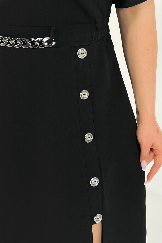 ID товара: 999785 Состав: 65% Полиэстер, 25% Хлопок, 10% Спандекс Сезон: Весна/Лето Фасон: Приталенный Рукав: Короткие Вид застежки: Пуговица Вырез горловины: Круглый Вид ткани: Барби Страна бренда: Россия Страна производства: Россия Элегантное женское платье миди представлено в трех расцветках . Изделие приталенное на резинке, с коротким рукавом (выше локтя), округлой горловиной и вырезом снизу, его дополняют декоративные элементы на поясе в виде цепочки и пуговиц от талии к вырезу. Платье подойдет на каждый день, на работу, на праздник. Деловое, но в то же время женственное. Комментарии к товару