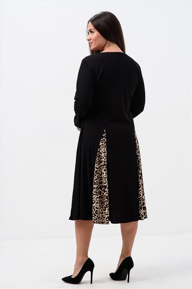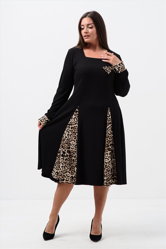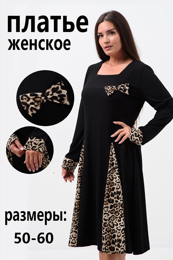 Страна производства: Россия Элегантное женское платье, выполнено из приятной ткани лапша, которая хорошо тянется и идеально сядет по фигуре, Изделие с длинным рукавом, что хорошо для прохладной погоды, низ свободный с леопардовыми вставками - тренд сезона, имеется декоративный элемент - бант. Наше платье идеально подойдет как праздничное на любой повод, на работу, и просто повседневное.