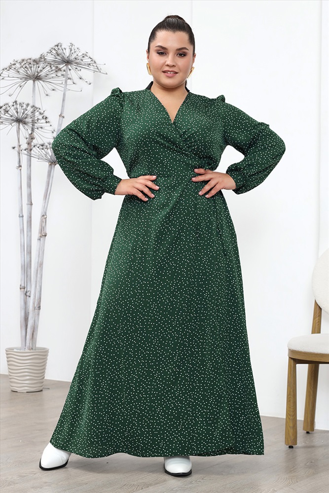 Платье "горошек" длинное с запАхом с длинным рукавом зеленое