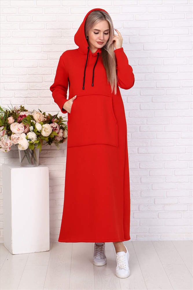 ID товара: 829127 Состав: Полиэстер 20%, Хлопок 80% Сезон: Осень/Зима Длина: Макси Фасон: Свободный крой Рукав: Длинные Вырез горловины: Капюшон Тип карманов: Кенгуру Основная ткань: Полиэстер | Футер 3-х нитка с начесом Стиль: Спортивный Страна бренда: Россия Страна производства: Россия Стильное спортивное платье свободного силуэта изготовлено из мягкого, хлопкового 3-х ниточного футера качества карде с начёсом, который имеет большую плотность (320 гр/м кв), Длинный рукав, карман кенгуру очень удобны и функциональны Комментарии к товару