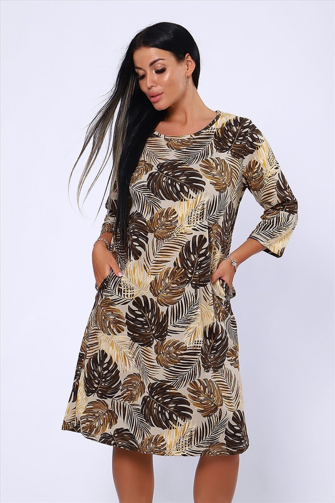 Страна производства: Россия Платье полуприлегающего силуэта с карманами в боковых швах и рукавами длиной 3/4. Идеальный повседневный вариант.