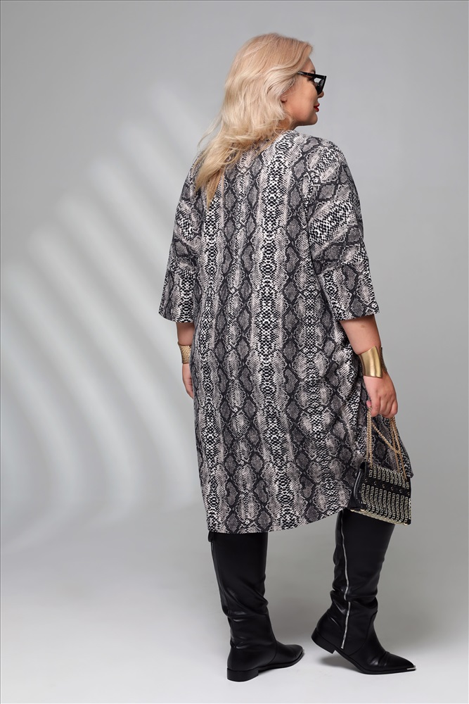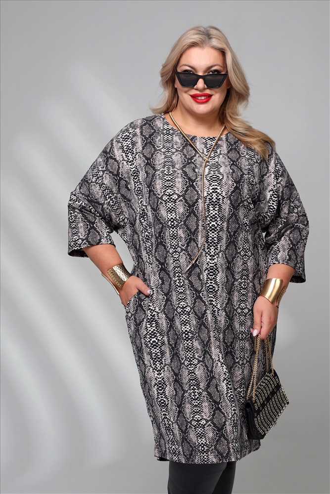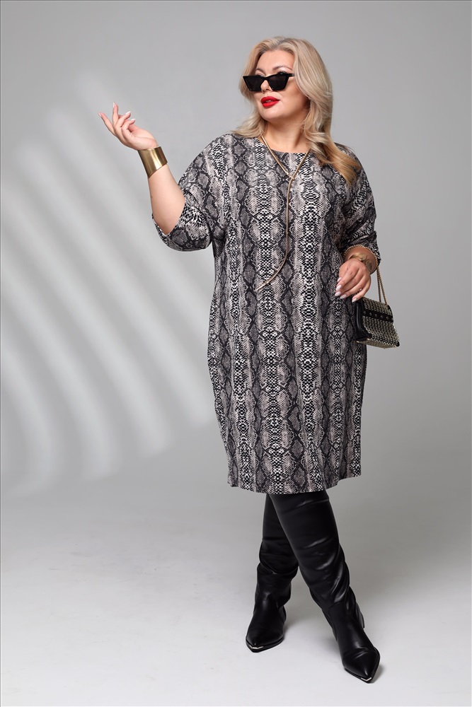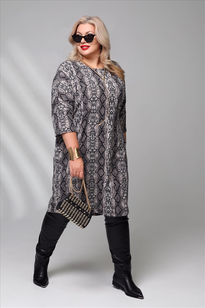 Цвет: Серый Фасон: Платье Длина платья: Французская длина Материал: Вискоза Длина рукава: 3/4 рукав Параметры модели: Рост 173 см, Размер 54 Платье карандаш "змеиный принт" серое