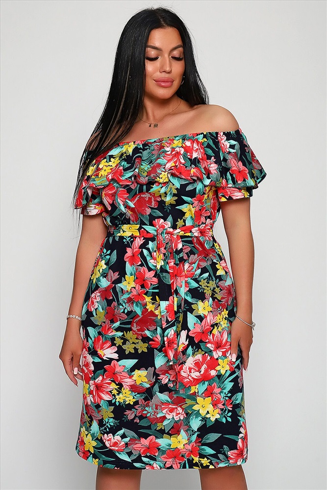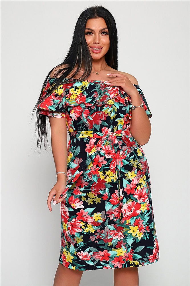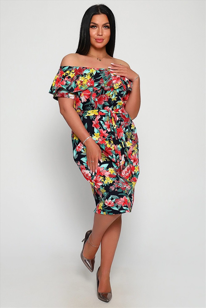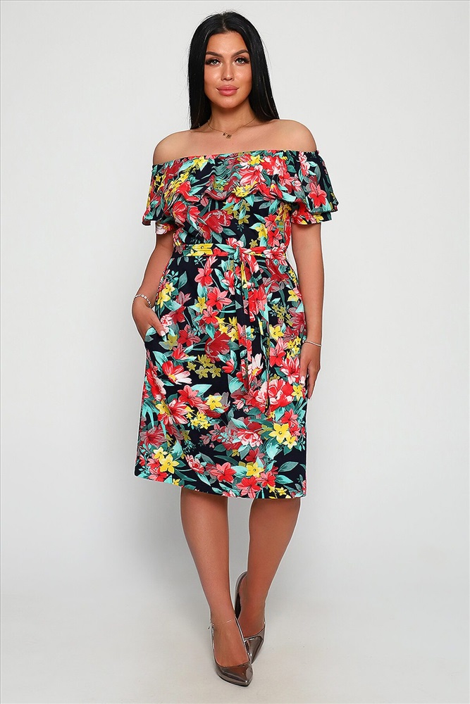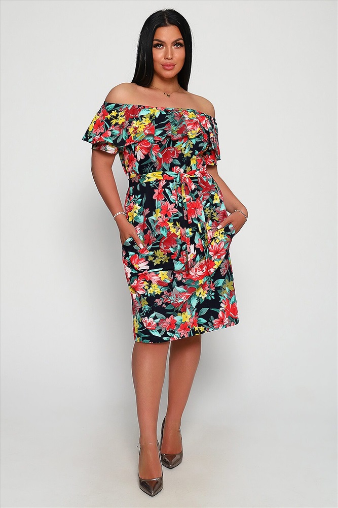ID товара: 884766 Состав: 100% Хлопок Сезон: Весна/Лето Длина: Ниже колена Фасон: Полуприлегающий Рукав: Короткие Вырез горловины: Кармен Рисунок: цветочный Декоративные элементы: Оборка Основная ткань: Хлопок | Кулирка Стиль: Романтический Страна бренда: Россия Страна производства: Россия Женское платье - сарафан полуприлегающего силуэта с поясом и широкой рюшью на плечах. Выполнен в романтическом стиле из трикотажного полотна, 100% хлопок. Горловина собрана на резинку и отделана широкой оборкой. Короткий рукав, реглан. Длина пояса в 44 размере 155 см, в 62 размере 180 см. Широкий размерный ряд с 44 до 62 размера. Яркие весенне-летние расцветки с принтом по ткани в виде клетки. Карманы в боковом шве, добавляют дополнительный комфорт при носке. Платье можно носить, как со спущенным с плеч верхом, так и с поднятым, либо на одно плечо. Прекрасно подходит беременным, так как пояс не фиксируется на изделии и может приталить платье на любом уровне. В этом нарядном и удобном платье, Вы будете себя чувствовать комфортно в любой обстановке: на прогулке, дома, в отпуске, на пляже, на даче и на любом празднике. Комментарии к товару