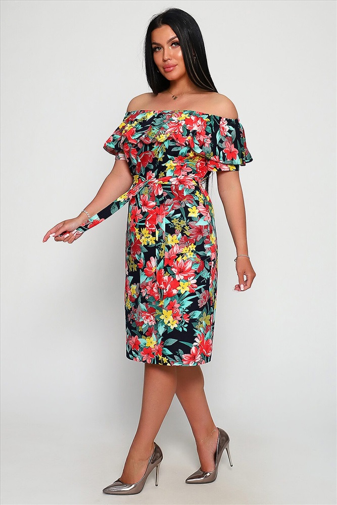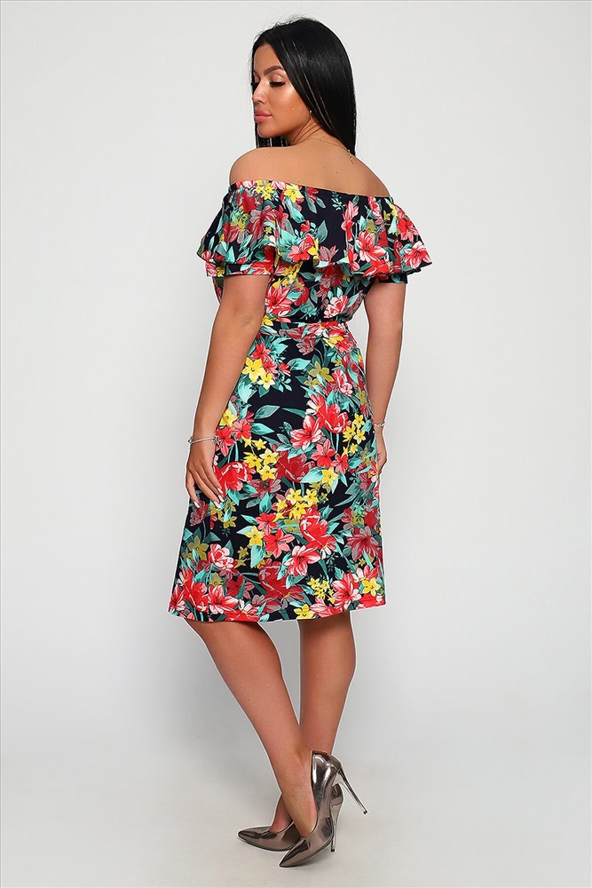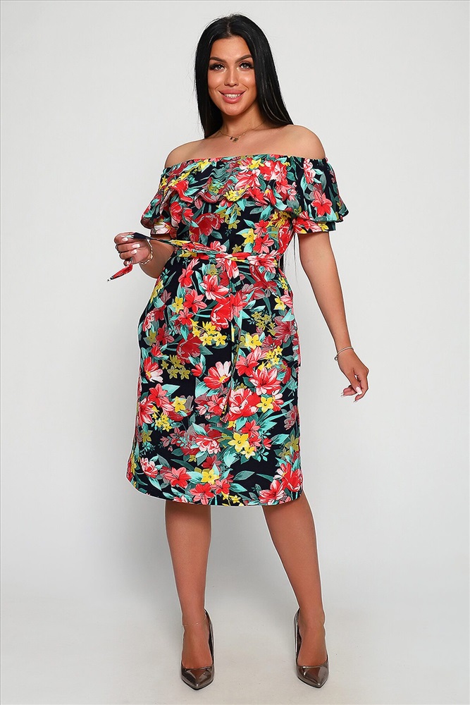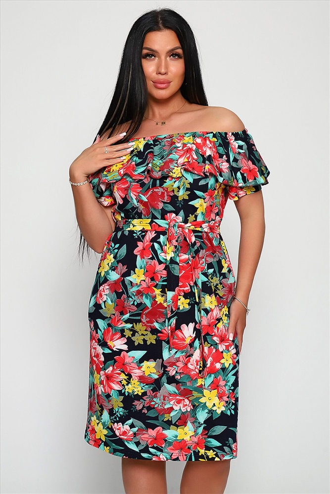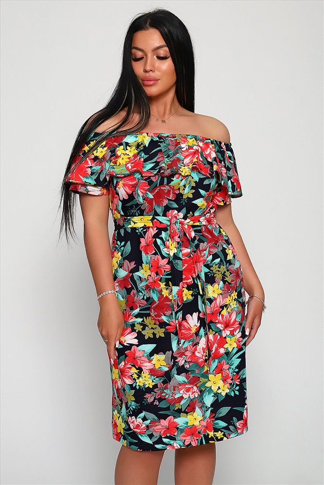 ID товара: 884766 Состав: 100% Хлопок Сезон: Весна/Лето Длина: Ниже колена Фасон: Полуприлегающий Рукав: Короткие Вырез горловины: Кармен Рисунок: цветочный Декоративные элементы: Оборка Основная ткань: Хлопок | Кулирка Стиль: Романтический Страна бренда: Россия Страна производства: Россия Женское платье - сарафан полуприлегающего силуэта с поясом и широкой рюшью на плечах. Выполнен в романтическом стиле из трикотажного полотна, 100% хлопок. Горловина собрана на резинку и отделана широкой оборкой. Короткий рукав, реглан. Длина пояса в 44 размере 155 см, в 62 размере 180 см. Широкий размерный ряд с 44 до 62 размера. Яркие весенне-летние расцветки с принтом по ткани в виде клетки. Карманы в боковом шве, добавляют дополнительный комфорт при носке. Платье можно носить, как со спущенным с плеч верхом, так и с поднятым, либо на одно плечо. Прекрасно подходит беременным, так как пояс не фиксируется на изделии и может приталить платье на любом уровне. В этом нарядном и удобном платье, Вы будете себя чувствовать комфортно в любой обстановке: на прогулке, дома, в отпуске, на пляже, на даче и на любом празднике. Комментарии к товару