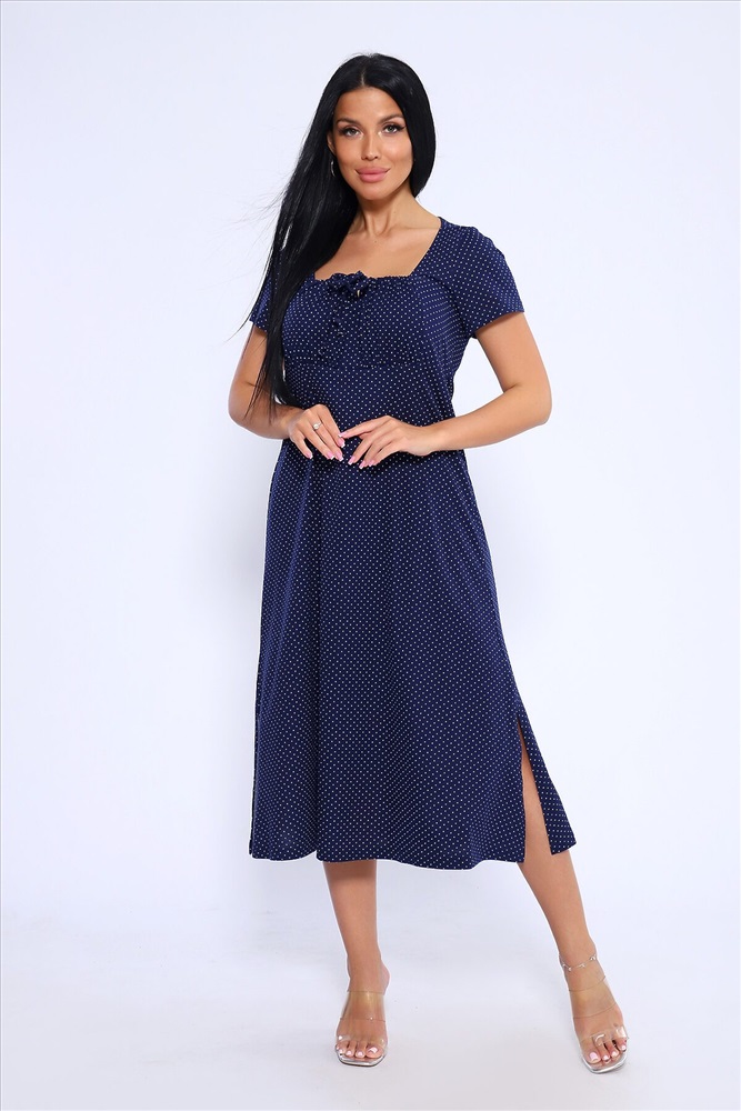 Длинное романтичное платье с короткими рукавами, декорировано квадратным вырезом декольте с завязками на груди. Милое, воздушное платье ниже колена с разрезами по боковым швам. Платье имеет свободный крой А-силуэта, который подходит для разного типа фигуры. Модель подойдет для прогулок, отдыха на пляже. Параметры модели 165 см,97-71-101 На модели представлен 46 размер.