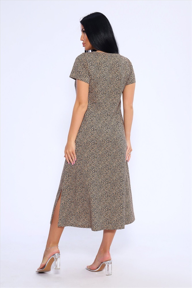 Длинное романтичное платье с короткими рукавами, декорировано квадратным вырезом декольте с завязками на груди. Милое, воздушное платье ниже колена с разрезами по боковым швам. Платье имеет свободный крой А-силуэта, который подходит для разного типа фигуры. Модель подойдет для прогулок, отдыха на пляже. Параметры модели 165 см,97-71-101 На модели представлен 46 размер.