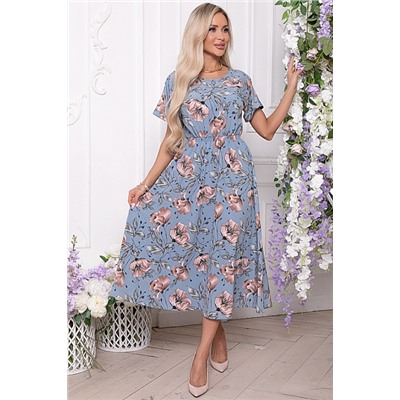 Платье из текстильного полотна,отрезное по линии талии присборено на эластичную резину с расклешенной летящей юбкой. 30% вискоза,65% п/э,5% лайкра