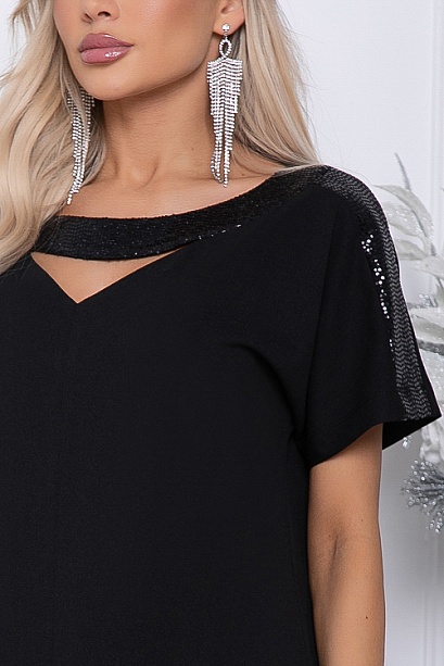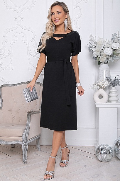 * Платье из трикотажного полотна А-образного силуэта с отделкой из трикотажа с пайетками. Пояс из основной ткани в комплекте. * Длина спинки:  44-103   46-103   48-104   50-106   52-107   54-108 * Длина рукава от горловины:  44-27   46-28   48-28   50-29   52-29   54-29 * Рост модели 168 см * Размер модели 44 30% вискоза,65% п/э,5% лайкра