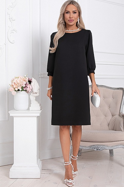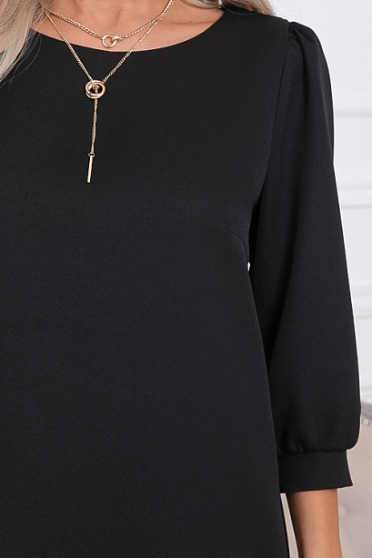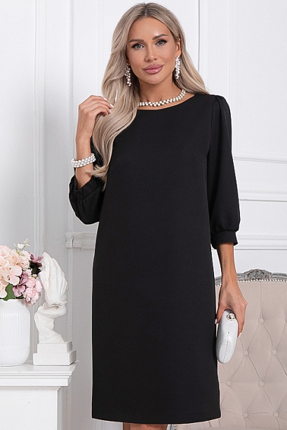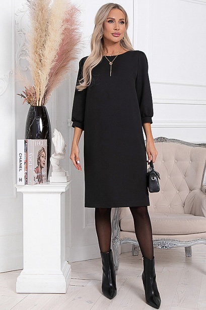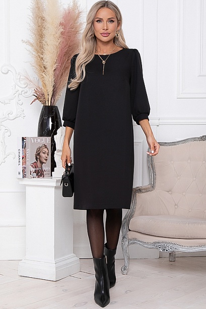 * Платье из костюмной ткани прямого, свободного силуэта. В среднем шве спинки шлица. Рукав втачной, по низу манжет частично собранный на резину.