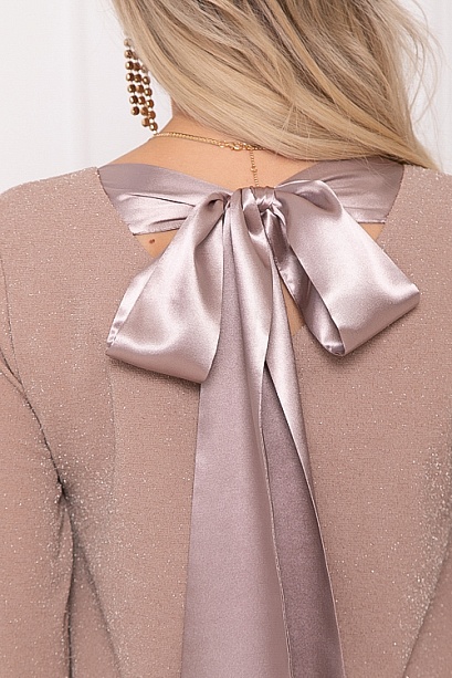 * Платье А-образного силуэта из трикотажного полотна с легким люрексом.Изюминка платья-вырез по спинке с завязывающимся бантом из шелка. * Длина по спинке от плечевого шва:  44-98   46-99   48-100   50-102   52-104   54-106 * Длина рукава:  44-61   46-61,5   48-61,5   50-62   52-62   54-62,5 * Рост модели 168 см * Размер модели 44 30% вискоза,65% п/э,5% лайкра