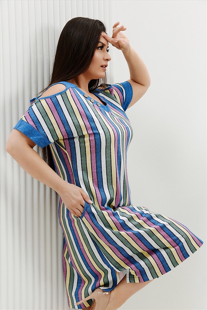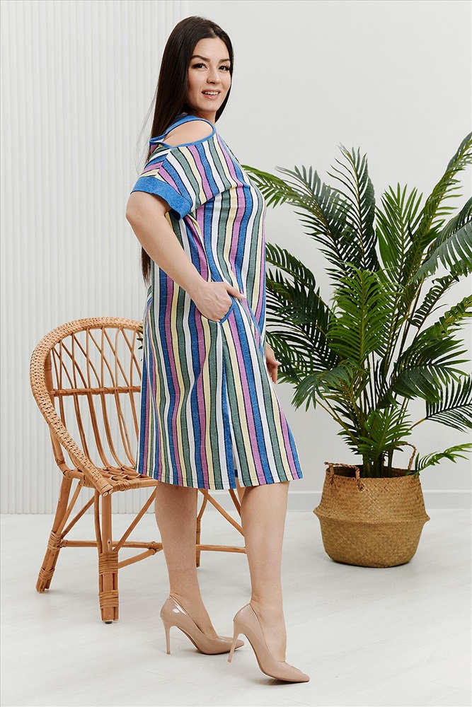 Производитель: НАТАЛИ ID товара: 884535 Состав: Хлопок 100% Сезон: Весна/Лето Длина: Миди Фасон: Свободный крой Рукав: Короткие Вырез горловины: V-образный Рисунок: Полоски Декоративные элементы: Разрезы Основная ткань: Хлопок | Кулирка Стиль: Повседневный Страна бренда: Россия Страна производства: Россия