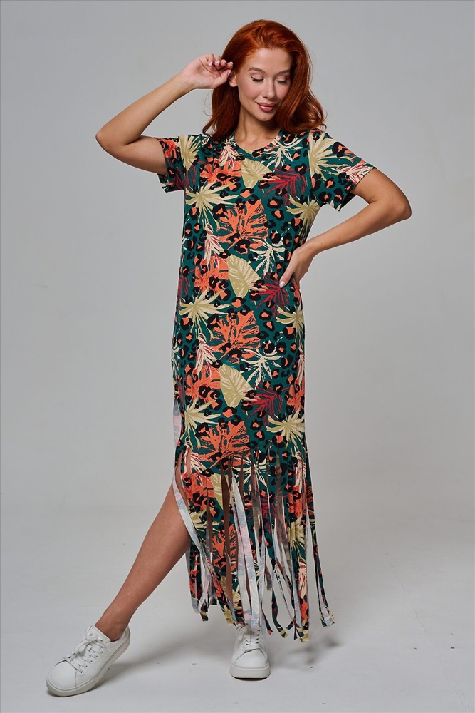 ID товара: 1220563 Состав: 92% Вискоза, 8% Эластан Сезон: Весна/Лето Длина: Макси Фасон: Прямое Рукав: короткие Вырез горловины: Округлый Рисунок: Абстракция Декоративные элементы: Бахрома Стиль: повседневный Вид ткани: Вискоза Страна бренда: Россия Страна производства: Россия Женское платье прямого кроя с разрезами по низу. Одним из самых популярных элементов летнего гардероба является летнее трикотажное платье. Благодаря легкой ткани и свободному крою обеспечивает комфорт и свободу движений. Комментарии к товару
