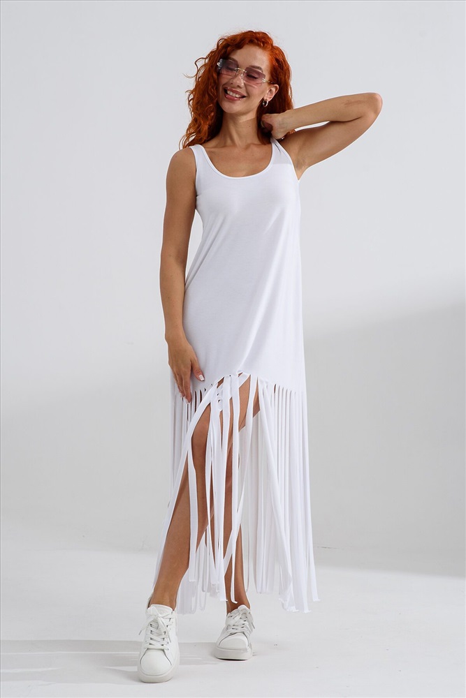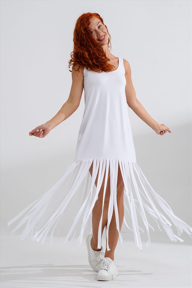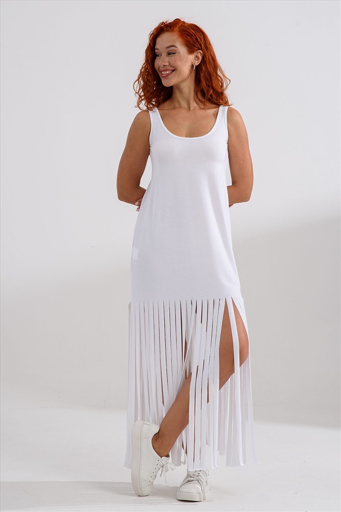 ID товара: 1194934 Состав: Полиэстер 100% Сезон: Весна/Лето Длина: Макси Фасон: Прямой Рукав: Без рукавов Вырез горловины: Округлый Декоративные элементы: Бахрома Основная ткань: Полиэстер Стиль: Повседневный Вид ткани: Вискоза браш Страна бренда: Россия Страна производства: Россия Платье с бахромой из струящейся вискозы. Лёгкое, летящее, манящее. Дарит невероятное ощущение женственности! Собираетесь на курорт? Благодаря легкости материала - отлично подойдёт как сарафан, летнее платье в отпуск. Платье с бахромой очень комфортно в жару. Это платье надо брать! Отлично впишется в Ваш гардероб! Прекрасно садится на фигуру! Комментарии к товару