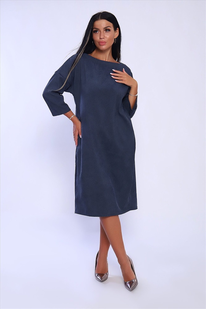 Платье женское из микровельвета представлено в трёх расцветках. Горловина в виде лодочки обработана обтачкой, спущенная пройма, рукав 3/4. Спинка присборена на кокетке , что придаёт фасону некую изюминку, в боковых швах удобные карманы. Неотъемлемая часть гардероба - платье миди, которое визуально делает фигуру более стройной, которое сочетает в себе женственность, стиль, удобство, сексуальность. Длина рукава в таблице измерений указана от начала горловины.