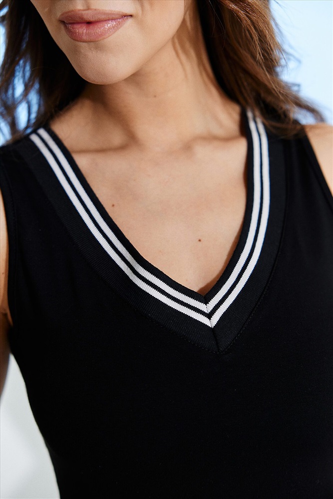 ID товара: 884534 Состав: Вискоза 92%; Лайкра 8% Сезон: Весна/Лето Длина: Миди Фасон: Полуприталенный Рукав: Без рукавов Вырез горловины: V-образный Основная ткань: Вискоза пенье Стиль: Повседневный Страна бренда: Россия Страна производства: Россия Платье полуприлегающего силуэта, с V-образной горловиной, длиной выше колена, без рукавов, с асимметричным воланом в нижней части. Горловина полочки обработана декоративной обтачкой с контрастными полосами из эластичного полотна. Горловина спинки и проймы обработаны бейкой из основного полотна. Комментарии к товару