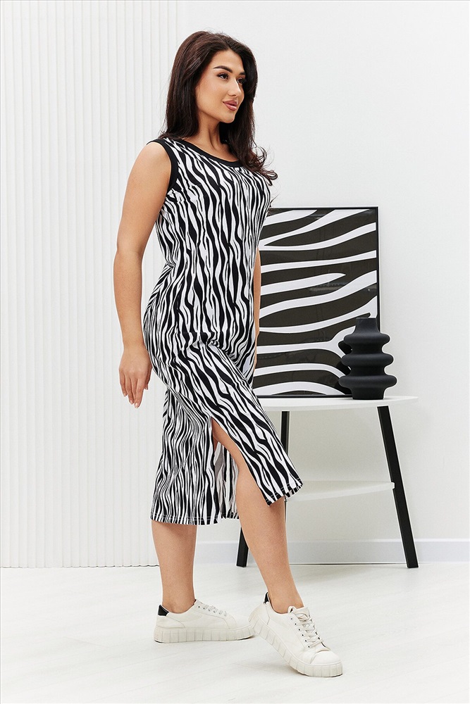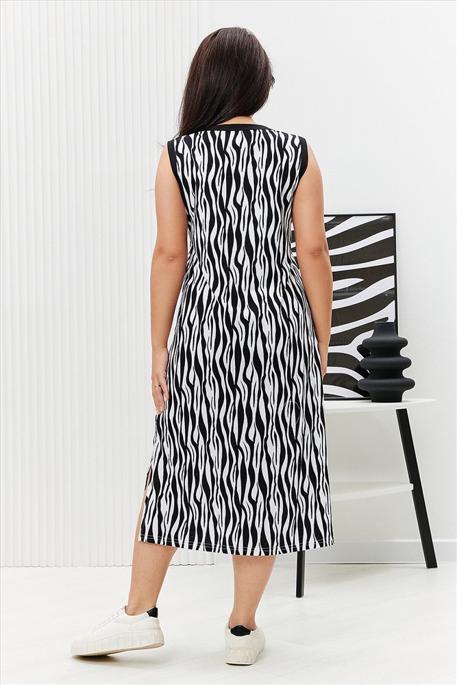 Страна производства: Россия Удлиненное платье-сарафан приталенного силуэта без рукава выполнено из кулирки 100% хлопок оригинальной яркой расцветки. По бокам - разрезы, горловина и проймы обработаны широким кантом. Платье комфортное, идеально подойдет как для дома, так и для отдыха.