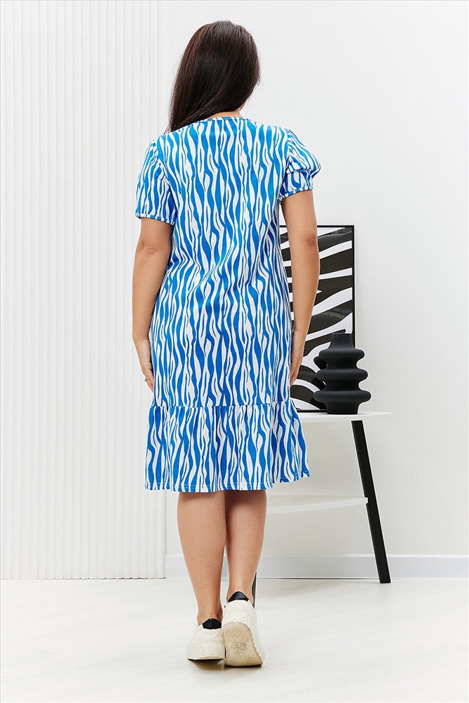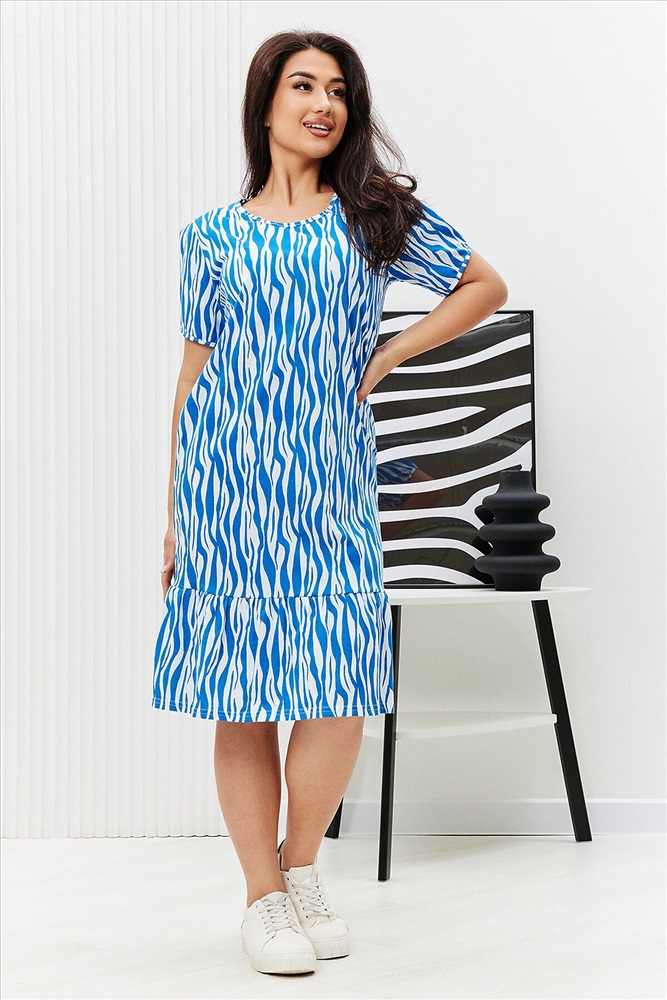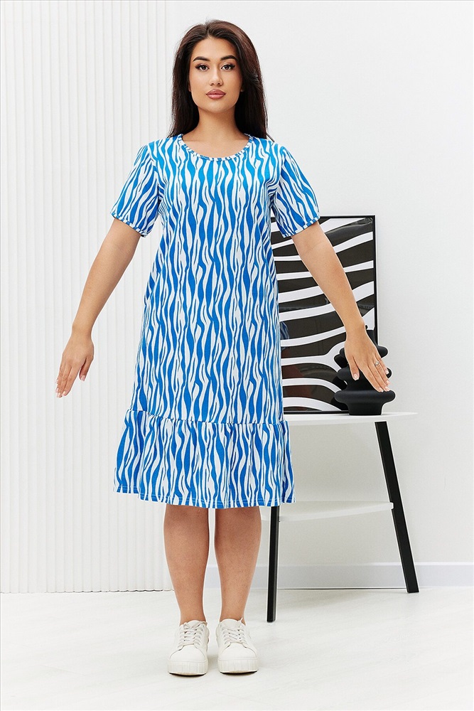 Платье женское с воланом яркой расцветки выполнено из кулирки 100% хлопок. Рукав имеет оригинальный разрез, горловина и низ рукава окантованы, низ волана подшит. Платье очень удобное, свободное, идеально подойдет для прогулок и отдыха.