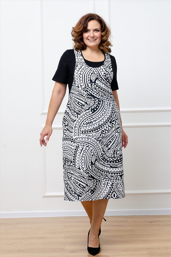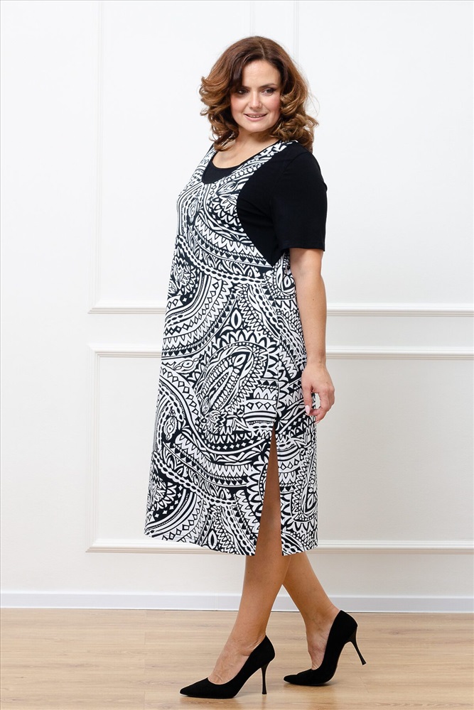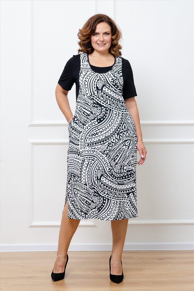 ID товара: 932933 Состав: Хлопок 95%, Лайкра 5% и Вискоза 92%, Лайкра 8% Сезон: Весна/Лето Длина: Миди Фасон: Полуприталенный Рукав: Короткий Вырез горловины: Округлый Основная ткань: Хлопок Стиль: Повседневный Вид ткани: Кулирка с лайкрой, вискоза Страна бренда: Россия Страна производства: Россия Платье-имитация сарафан+футболка. Силуэт полуприлегающий, длинное, с округлой горловиной, с боковыми карманами. Рукав короткий, из отделочного полотна. Горловина обработана бейкой из отделочного полотна. Комментарии к товару