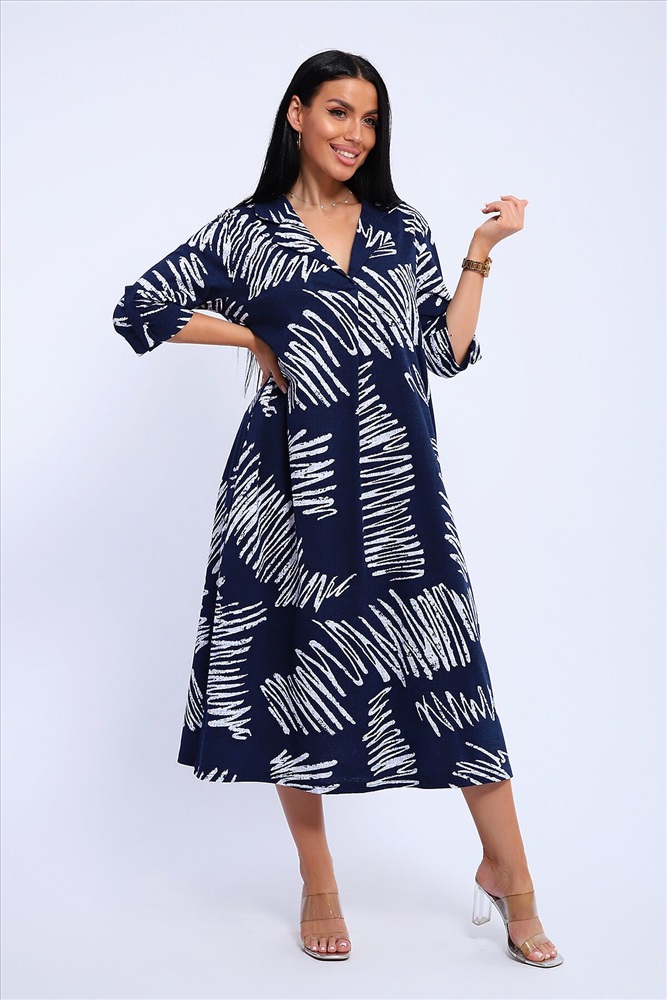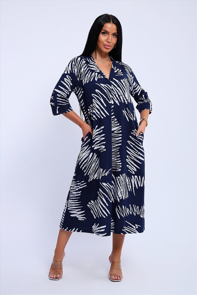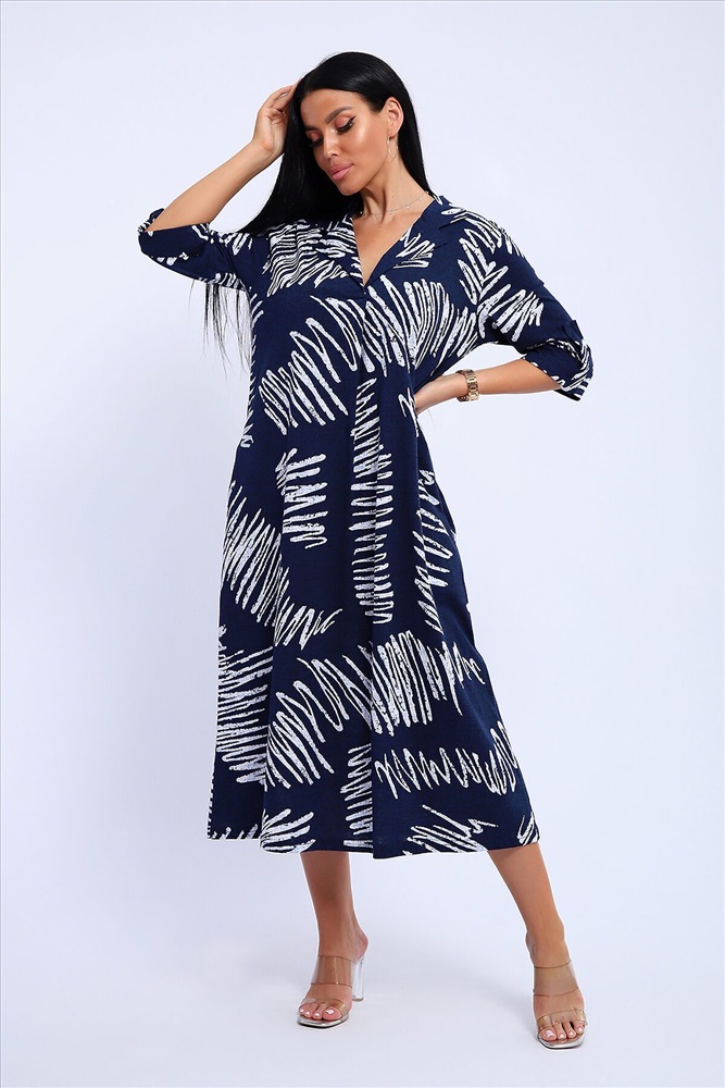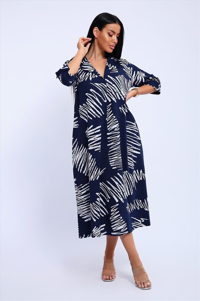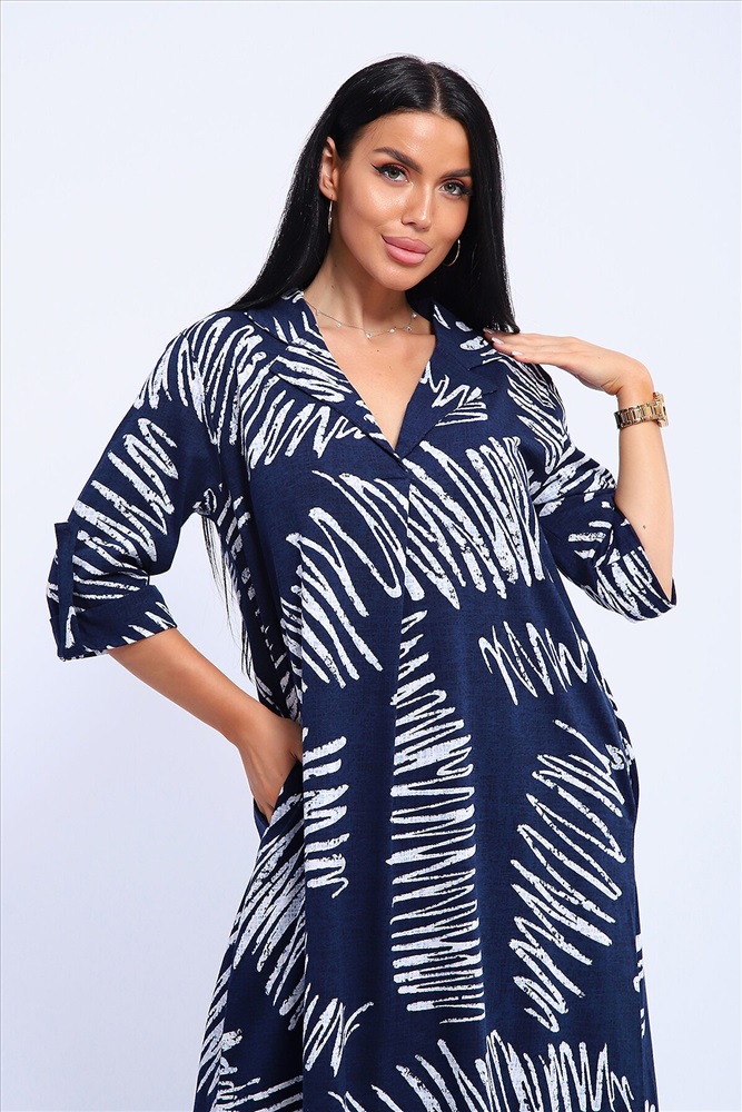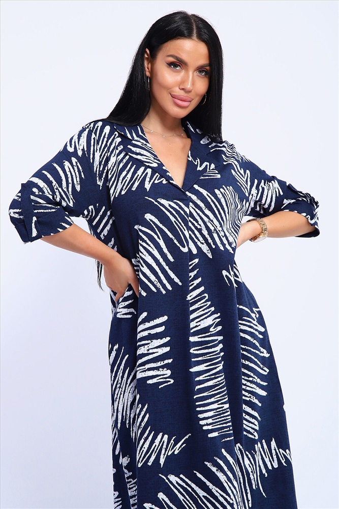 ID товара: 1130867 Состав: 100% Хлопок Сезон: Весна/Лето Длина: Миди Фасон: Свободный Рукав: 3/4 Вырез горловины: V-образный, отложной воротничок Рисунок: Абстракция Декоративные элементы: Принт Основная ткань: Хлопок Стиль: повседневный Вид ткани: Кулирка Страна бренда: Россия Страна производства: Россия Платье женское свободного покроя. Воротник отложной рубашечного типа, образует V-образный вырез. Платье с карманами в боковых швах. Длина платья чуть выше щиколотки. Рукав 3/4 с манжетой, поднят патой. Размеры сдвоенные: 48 размер - на размеры 46-48 52 размер - на размеры 50-52 56 размер - на размеры 54-56 60 размер - на размеры 58-60 64 размер - на размеры 62-64 На модели представлен 48 размер. Параметры модели: 97-71-101, рост 165 см. Комментарии к товару