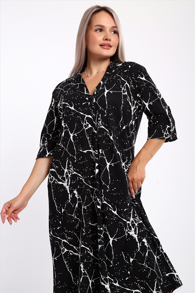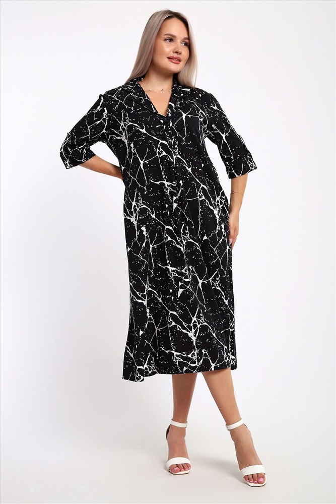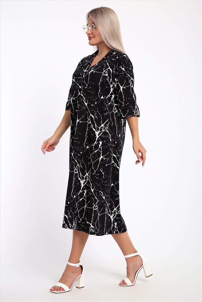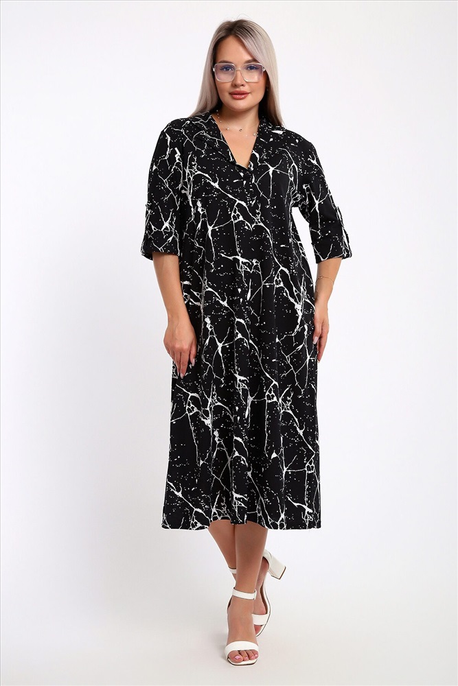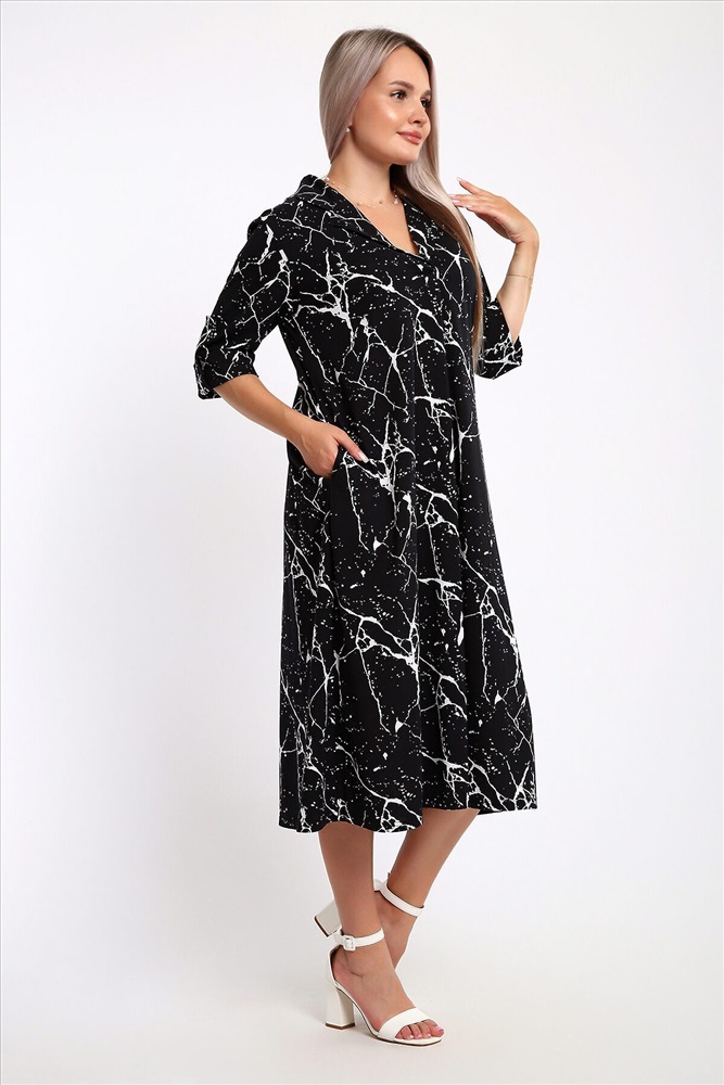 ID товара: 1178724 Состав: 100% Хлопок Сезон: Весна/Лето Длина: Миди Фасон: Свободный Рукав: 3/4 Вырез горловины: V-образный Рисунок: Абстракция Декоративные элементы: Принт Основная ткань: Хлопок Стиль: повседневный Вид ткани: Кулирка Страна бренда: Россия Страна производства: Россия Платье женское свободного покроя. Воротник отложной рубашечного типа, образует V-образный вырез. Платье с карманами в боковых швах. Длина платья чуть выше щиколотки. Рукав 3/4 с манжетой, поднят патой. На моделе представлен 48 размер. Параметры модели: 97-71-101, рост 165 см. Комментарии к товару