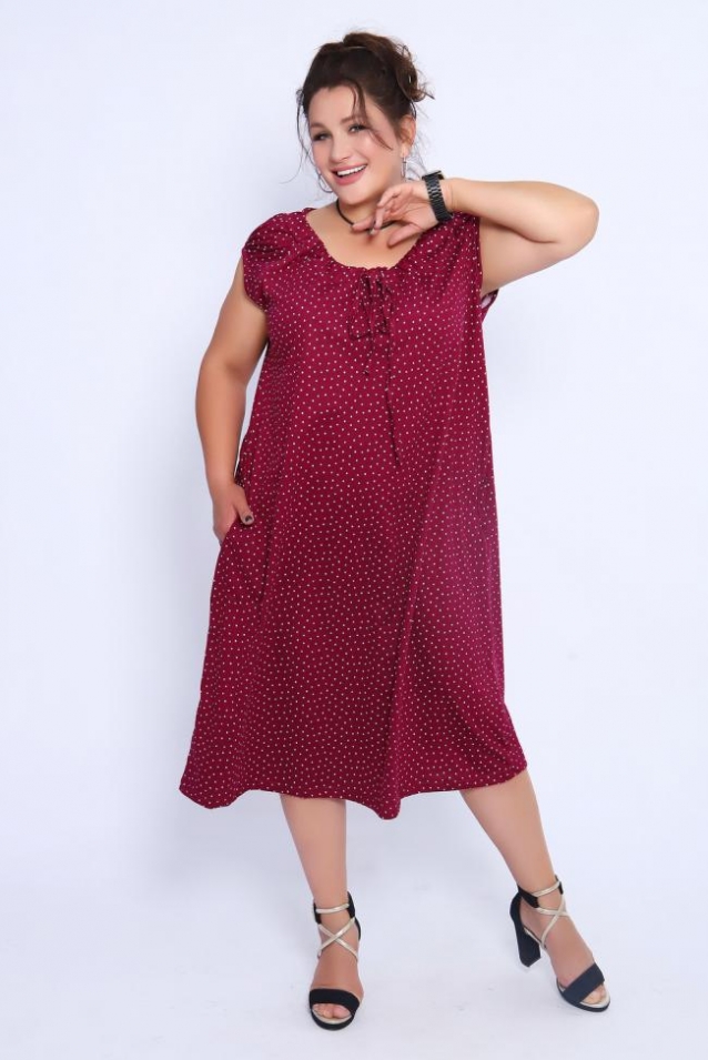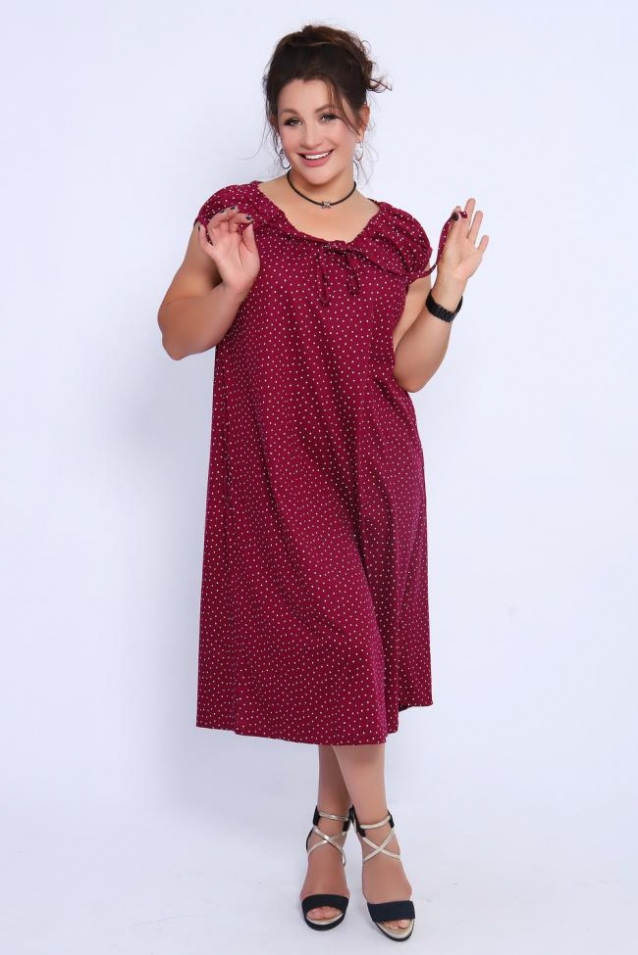 Платье женское с коротким рукавом. Данная модель выполнена из трикотажного полотна кулирка (хлопок 100%). Покрой полуприлегающий, рукав реглан. Верхняя часть изделия с кулиской, что позволяет регулировать горловину. По бокам присутствуют карманы, которые обработаны окантовкой из основной ткани. Отлично подходит для прогулок и дома.