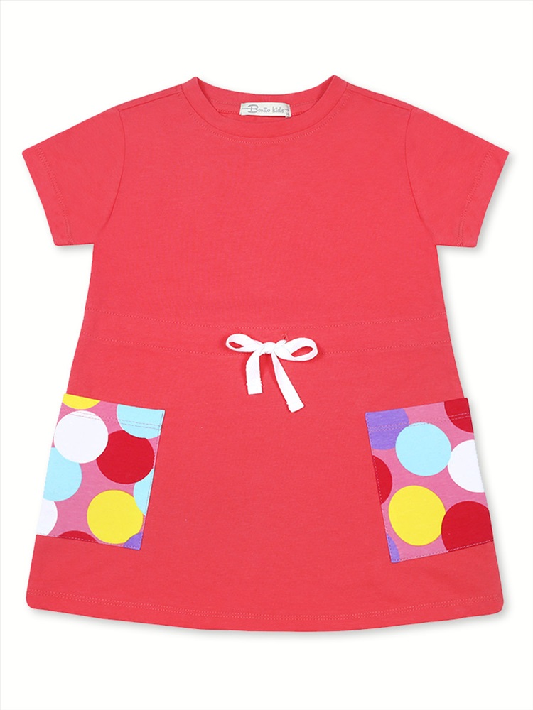 Материал: Кулирка с лайкрой Состав: Хлопок 92%, лайкра 8% Цвет: Коралловый Рисунок: Без рисунка Замечательное платье для девочки, изготовленное из тонкого трикотажа - кулирки с добавлением лайкры. По вороту - мягкая трикотажная манжета, пояс с завязками. Модель украшают два накладных кармана с ярким набивным рисунком. Внимание: цвет завязок может отличаться от представленного на фото. Замеры модели: Размер 98: длина 51 см, ширина 29 см; Размер 104: длина 53 см, ширина 31 см; Размер 110: длина 55 см, ширина 33 см; Размер 116: длина 58 см, ширина 33,5 см; Размер 122: длина 59 см, ширина 35 см.