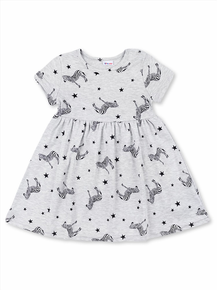 Прелестное платье для девочки, изготовленное из 100% хлопка - интерлока. На одном плечике застёгивается на кнопочки. Модель украшает симпатичный набивной рисунок по всему изделию.