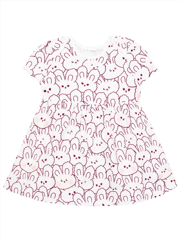 Очаровательное платье для девочки, сшитое из 100% хлопка - кулирки. Юбка отрезная в сборку. Модель украшает милый набивной рисунок по всему изделию.