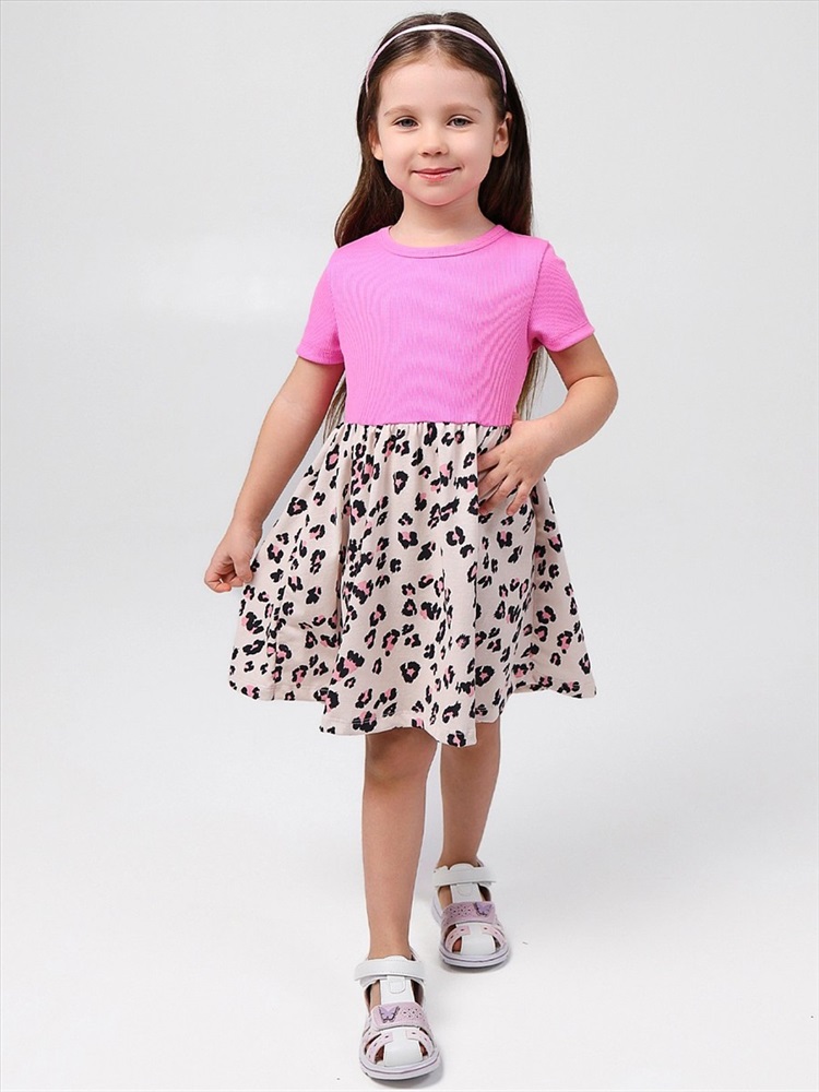 Чудесное платье для девочки с симпатичным набивным рисунком на юбочке. Материал верха - кашкорсе, материал низа - кулирка.
