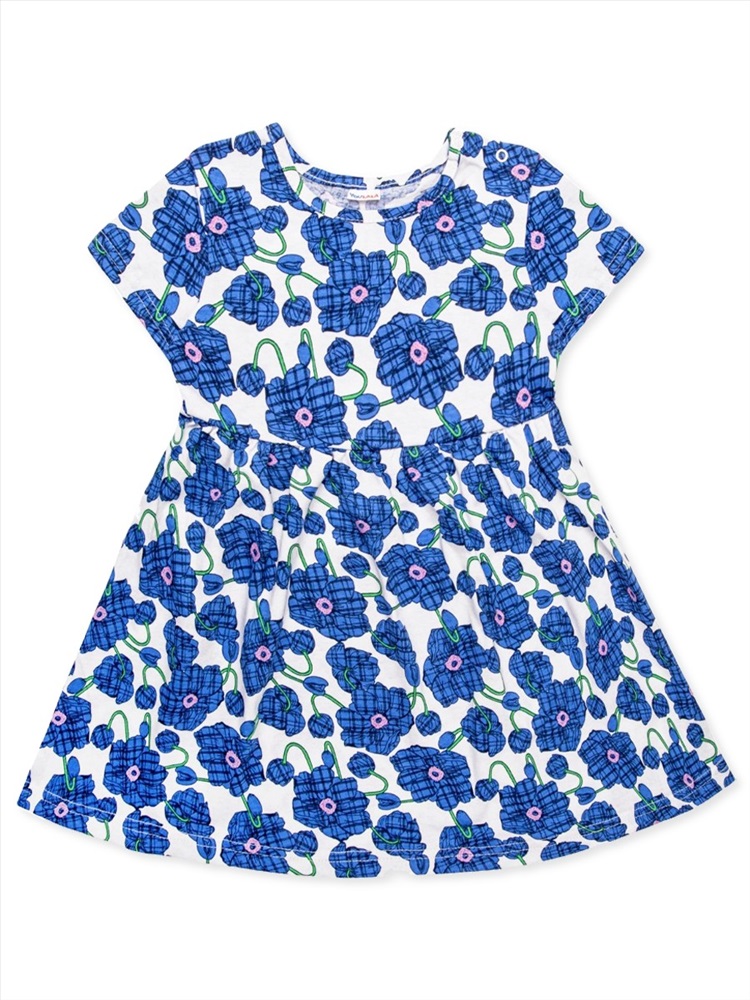 Чудесное платье для девочки, изготовленное из 100% хлопка - кулирки. На одном плечике застёгивается на кнопочки. Модель украшает симпатичный набивной рисунок.