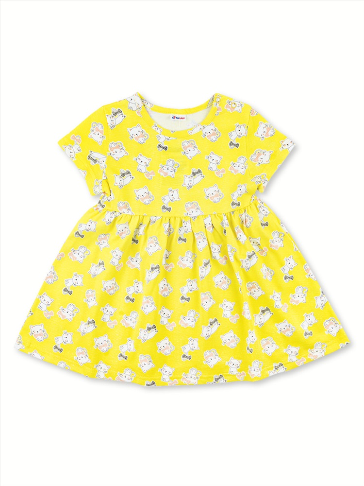 Чудесное платье для девочки, изготовленное из 100% хлопка - кулирки. На одном плечике застёгивается на кнопочки. Модель украшает симпатичный набивной рисунок.