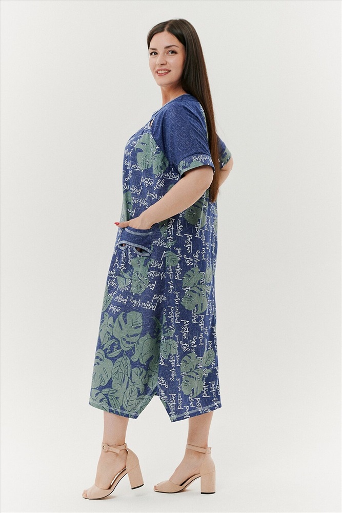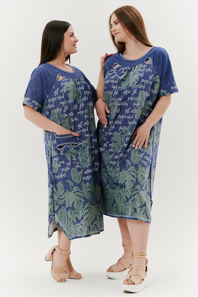 ID товара: 791429 Состав: Хлопок 100% Сезон: Весна/Лето Длина: Ниже колена Фасон: Трапеция Рукав: Короткие Вырез горловины: Округлый Рисунок: растительный Тип карманов: Накладные Декоративные элементы: Разрезы Основная ткань: Хлопок | Кулирка Стиль: Повседневный Страна бренда: Россия Страна производства: Россия Платье женское, расширенное к низу. Рукав реглан, короткий, на манжете. По горловине - обтачки, в шве притачивания рукава к полочке в области обтачки, разрез в форме листка. На полочке накладные карманы, с обтачкой и разрезами. Боковые швы внизу платья срезаны под углом. Комментарии к товару