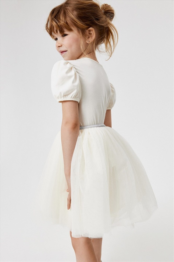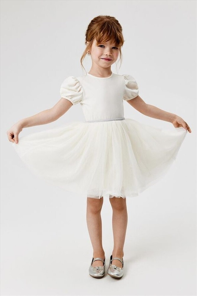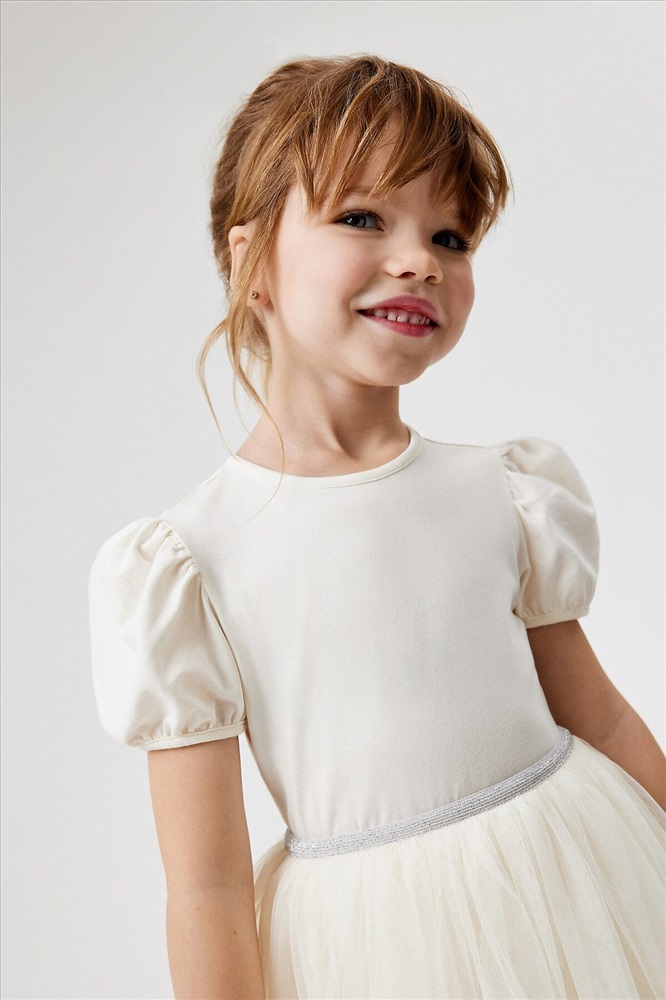 Детское нарядное платье с сетчатой юбкой для девочки - яркое дополнение гардероба юной модницы. Объемные рукава-фонарики придают модели легкость и воздушность. Основная часть юбки выполнена из мягкой трикотажной подкладки, которая обеспечивает комфорт в ношении. Пояс украшен блестящей резинкой с люрексом, что добавляет платью изысканности и праздничного настроения. Пышная юбка с эффектными сборками придает образу легкости и воздушности. Округлая горловина облегчает процесс снятие и надевания. Платье представлено в розовом и молочном цветах. Добавьте к изделию изящные туфли и завершите нарядный образ как на праздничные события, так и для простых прогулок. Рост модели на фото 116. Размер модели на фото 140.